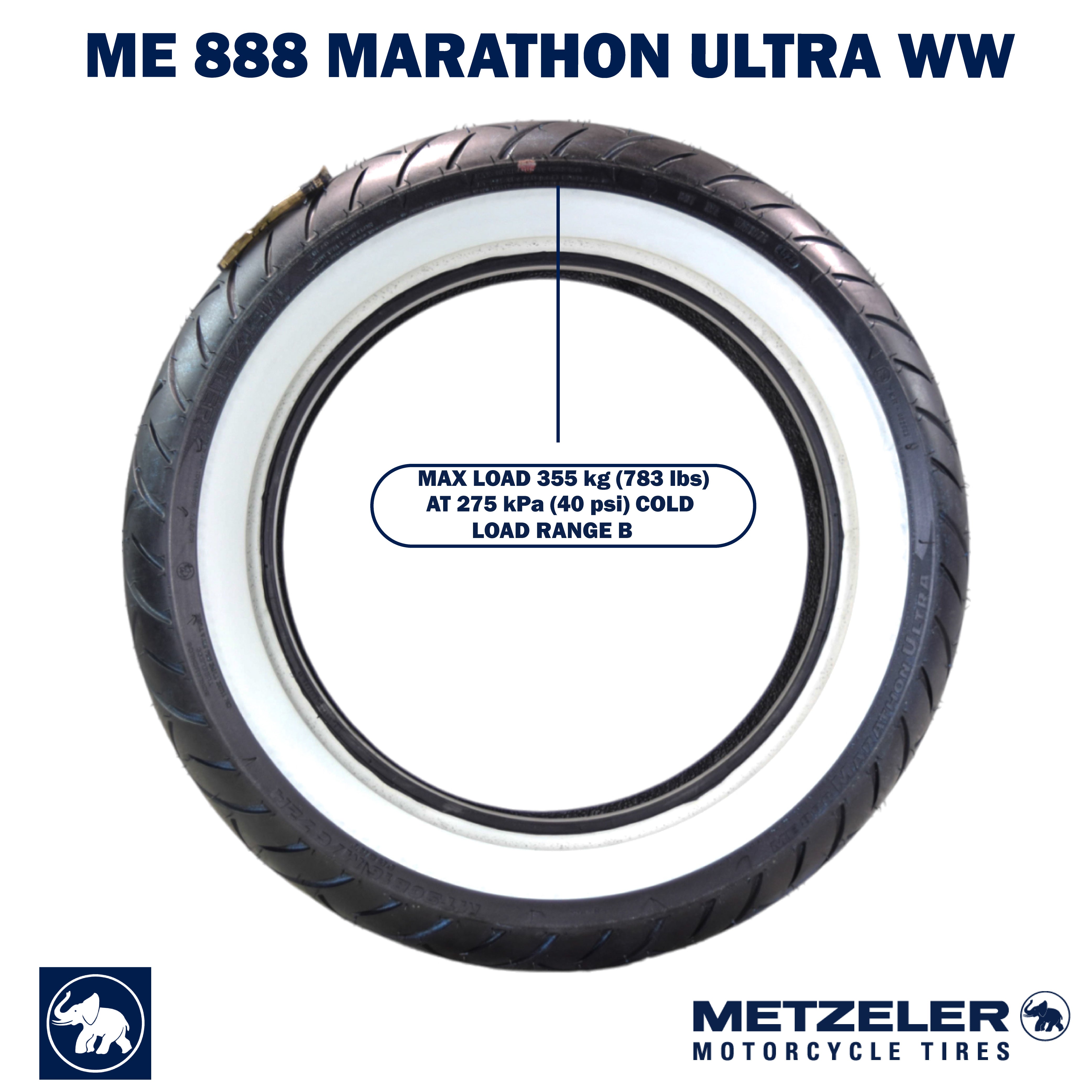 Metzeler ME 888 Marathon Ultra White Wall MT90 B16 Rear Tire with Keychain