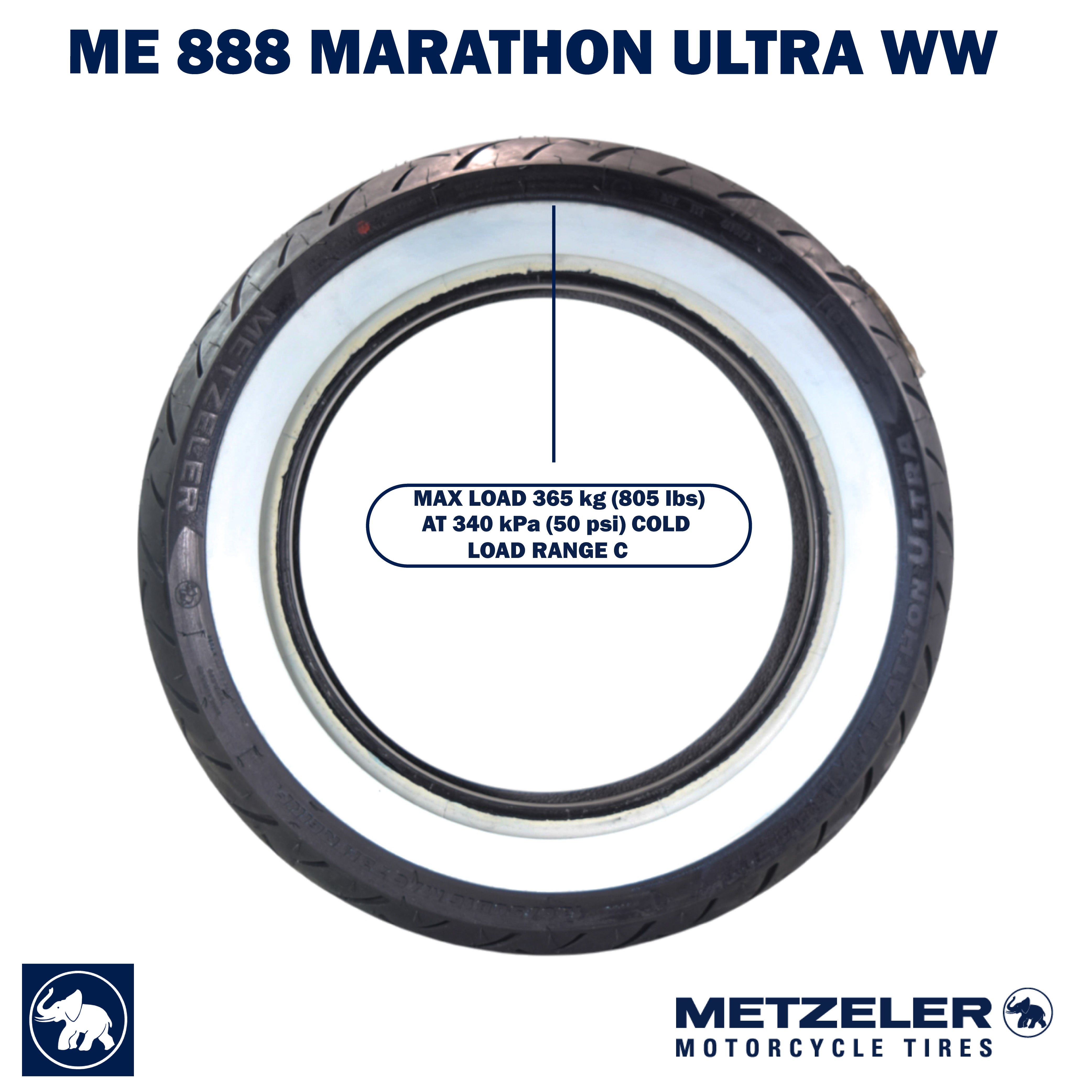 Metzeler ME 888 Marathon Ultra White Wall 130/90-16 Rear Tire with Keychain