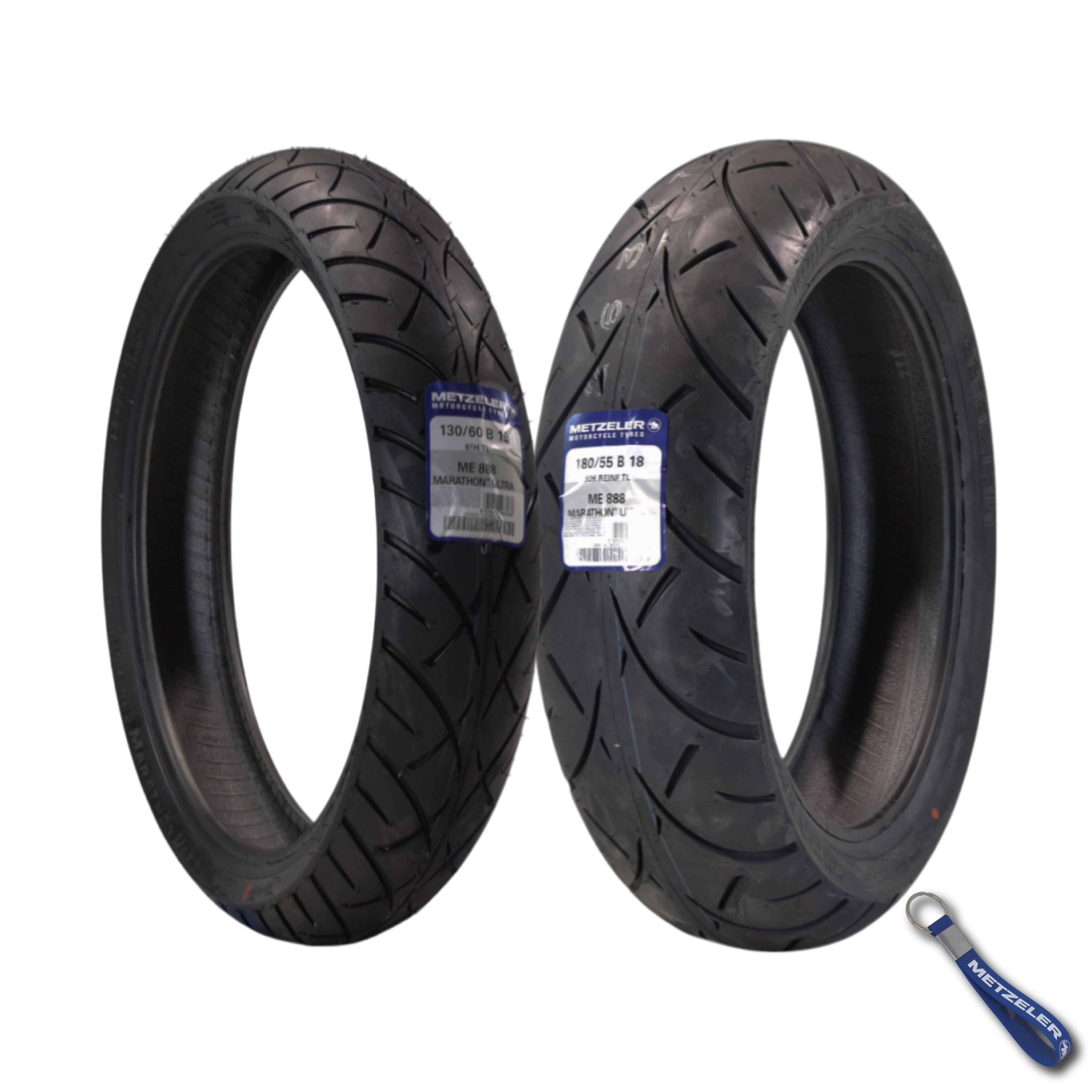 Metzeler ME 888 Marathon Ultra 130/60B19 & 180/55B18 MC Tire Set with Keychain