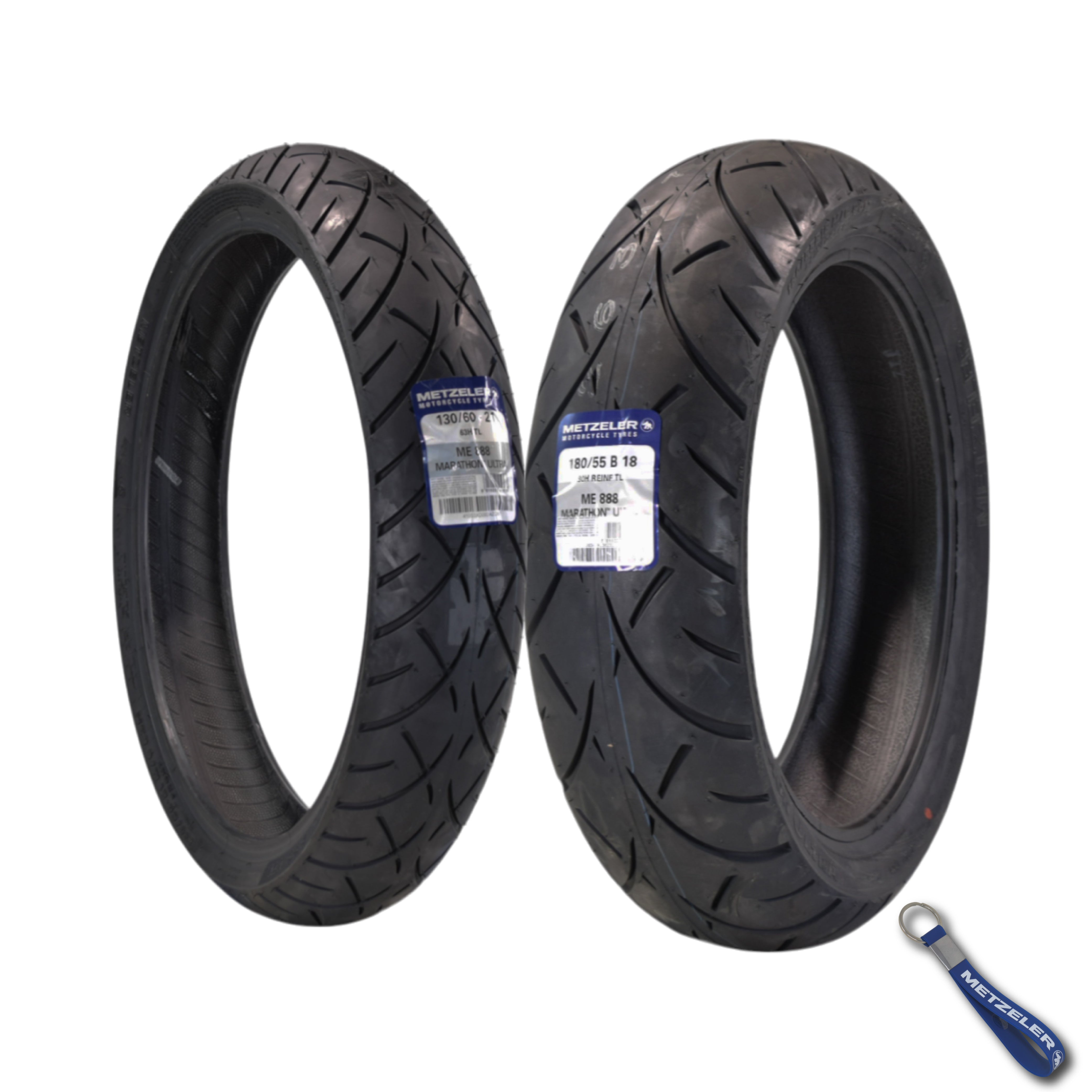 Metzeler ME 888 Marathon Ultra 130/60-21 & 180/55B18 MC Tire Set with Keychain