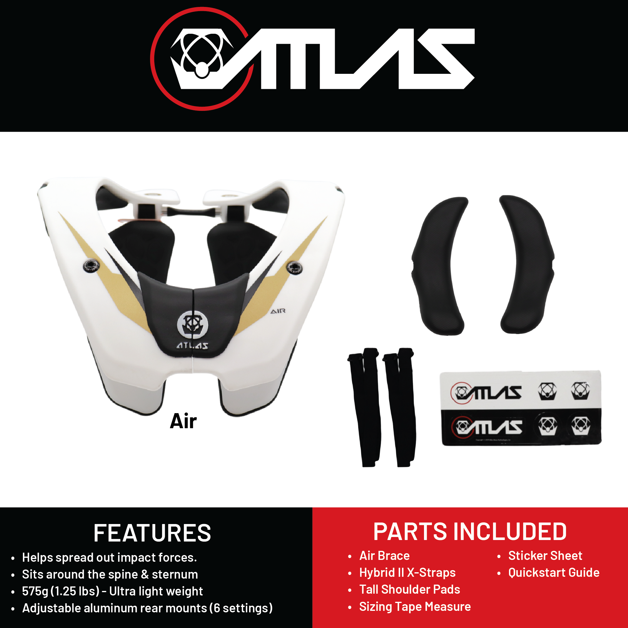 Atlas Air Anti-Compression Sport Neck Brace (Adult - Medium) for Use In: Powersports, Offroad Racing, Motocross, Mountain Biking, BMX, Snowmobiling, Snowboarding (White/Gold)