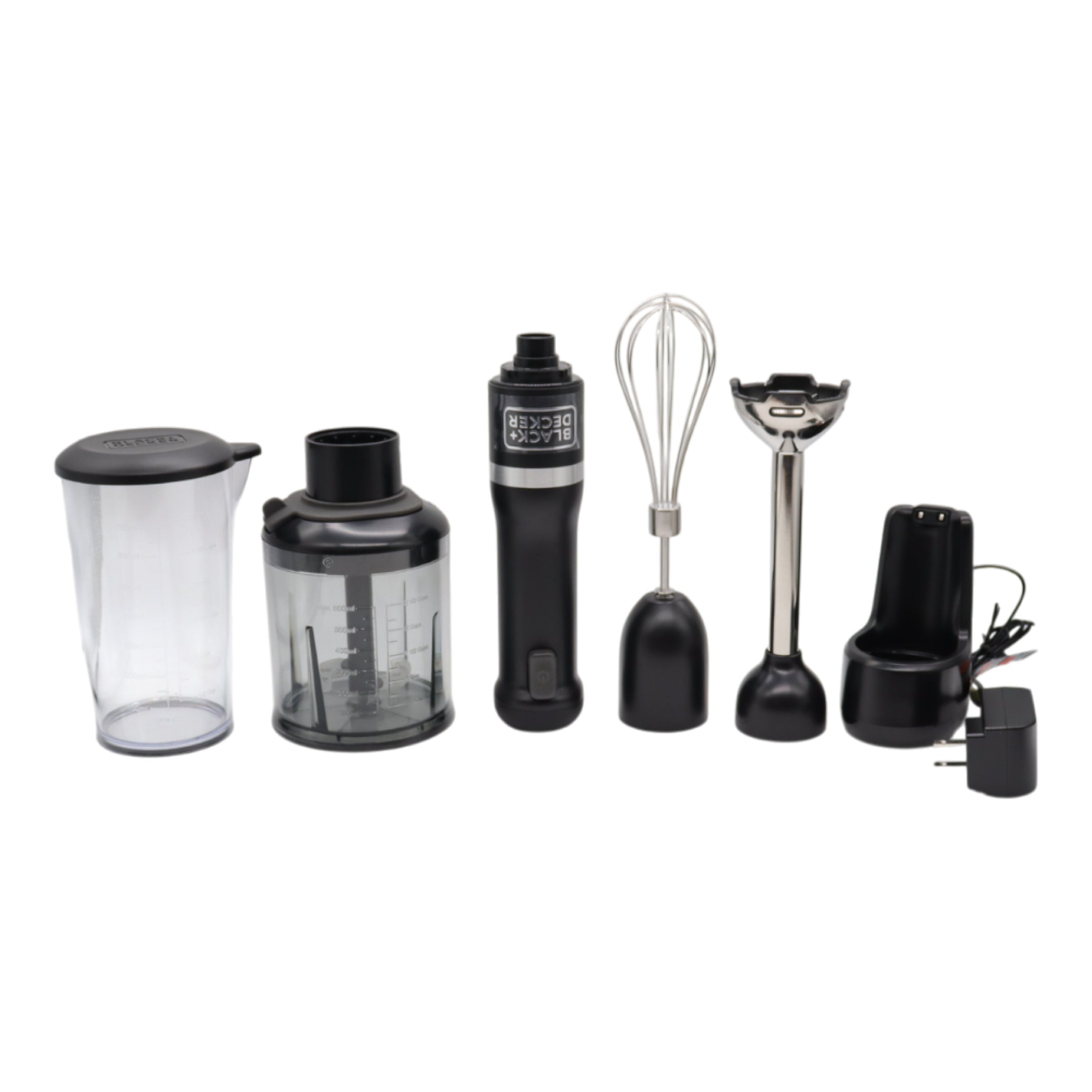 BLACK+DECKER BCKM1013K10 Kitchen Wand Cordless 3-in-1 Immersion Blender Set – Hand Blender with Whisk, Food Chopper & Charging Dock – 150W Motor, 2 Speeds, Stainless Steel Blades – Black