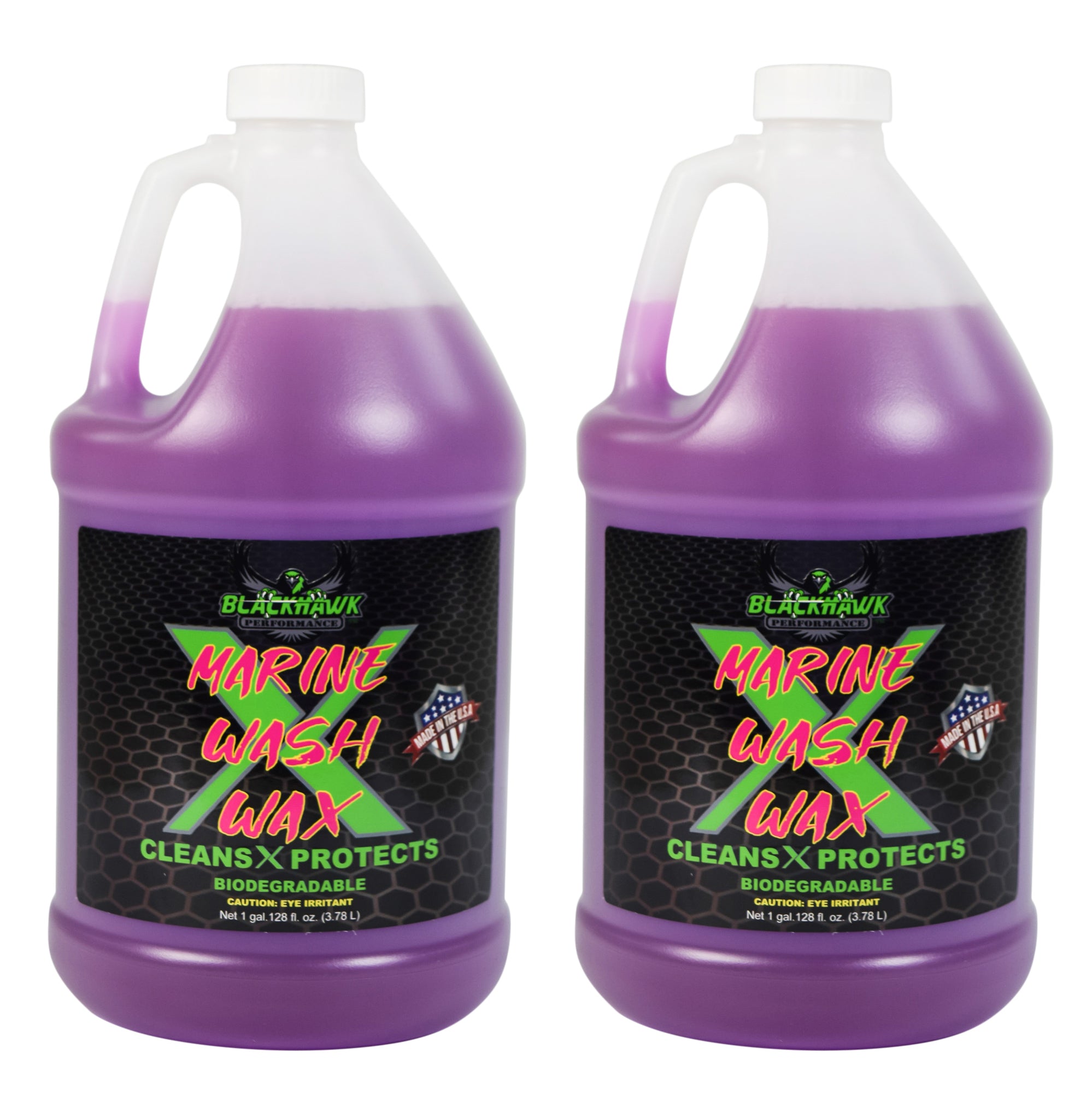 BLACKHAWK PERFORMANCE Boat Wash X Wax - Gently Removes All Dirt & Grime - Non-Yellowing Wax Leaves Shiny Finish While Protecting All Paints & Clear Coats - Marine Safe - Made in USA (1 gal, 2pk)