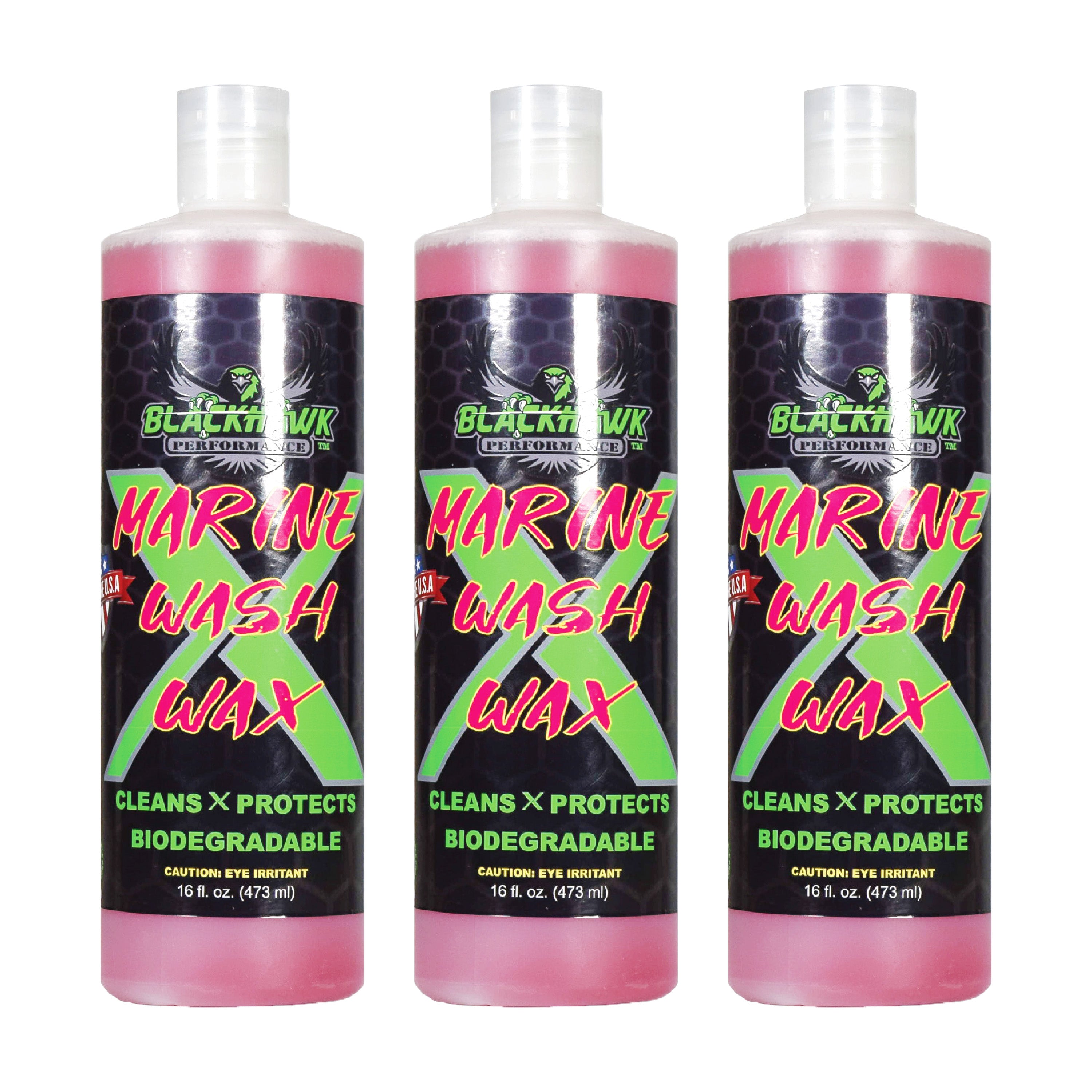 BLACKHAWK PERFORMANCE Boat Wash X Wax - Gently Removes All Dirt & Grime - Non-Yellowing Wax Leaves Shiny Finish While Protecting All Paints & Clear Coats - Marine Safe - Made in USA (16oz, 3pk)