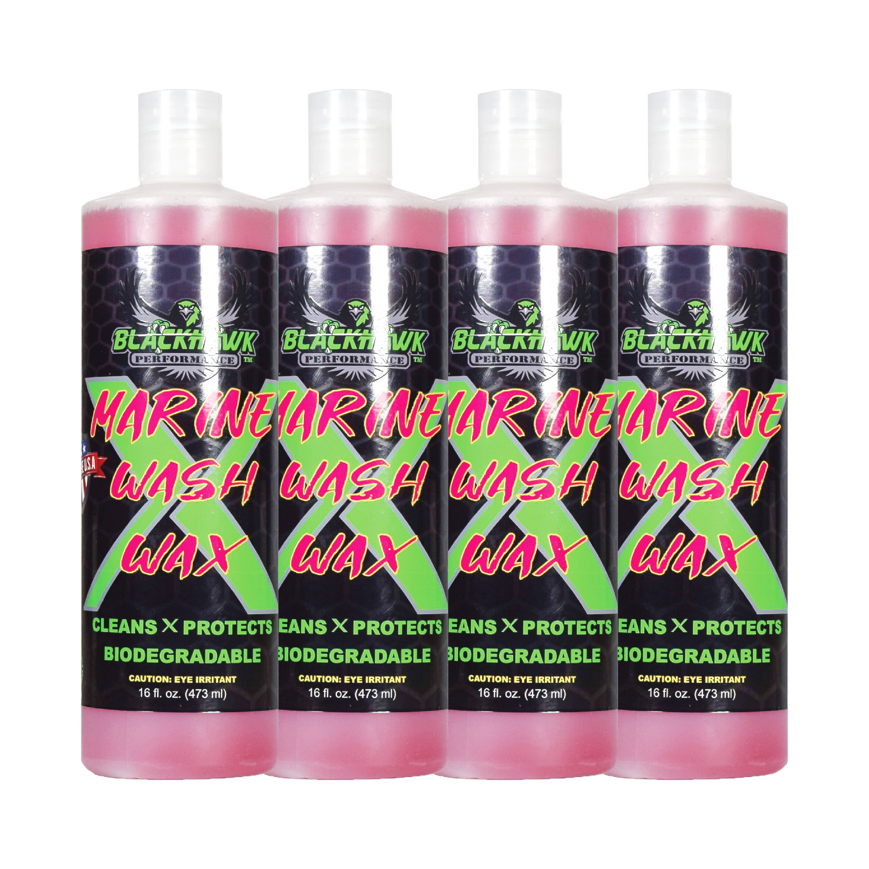 BLACKHAWK PERFORMANCE Boat Wash X Wax - Gently Removes All Dirt & Grime - Non-Yellowing Wax Leaves Shiny Finish While Protecting All Paints & Clear Coats - Marine Safe - Made in USA (16oz, 4pk)