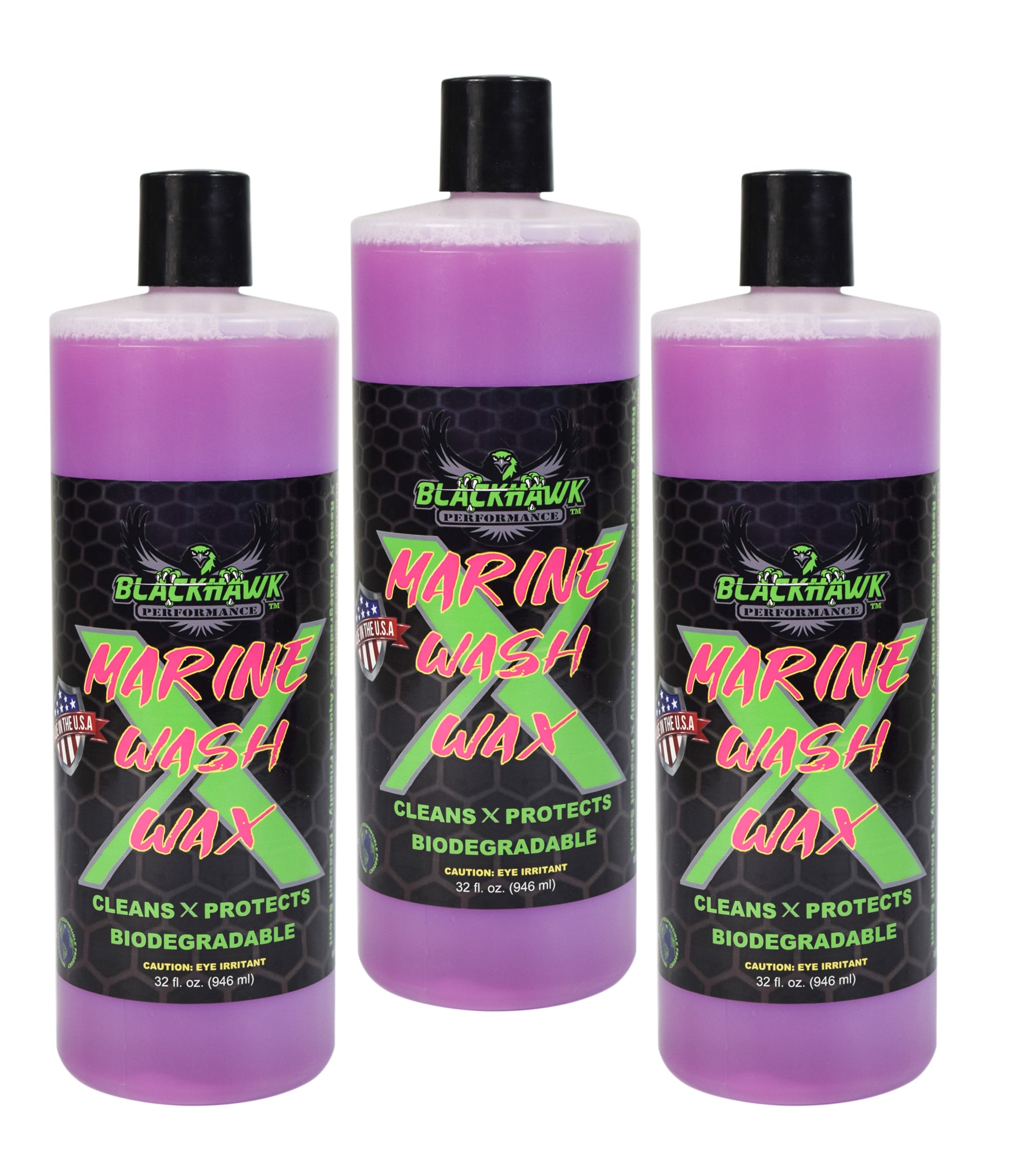 BLACKHAWK PERFORMANCE Boat Wash X Wax - Gently Removes All Dirt & Grime - Non-Yellowing Wax Leaves Shiny Finish While Protecting All Paints & Clear Coats - Marine Safe - Made in USA (32oz, 3pk)
