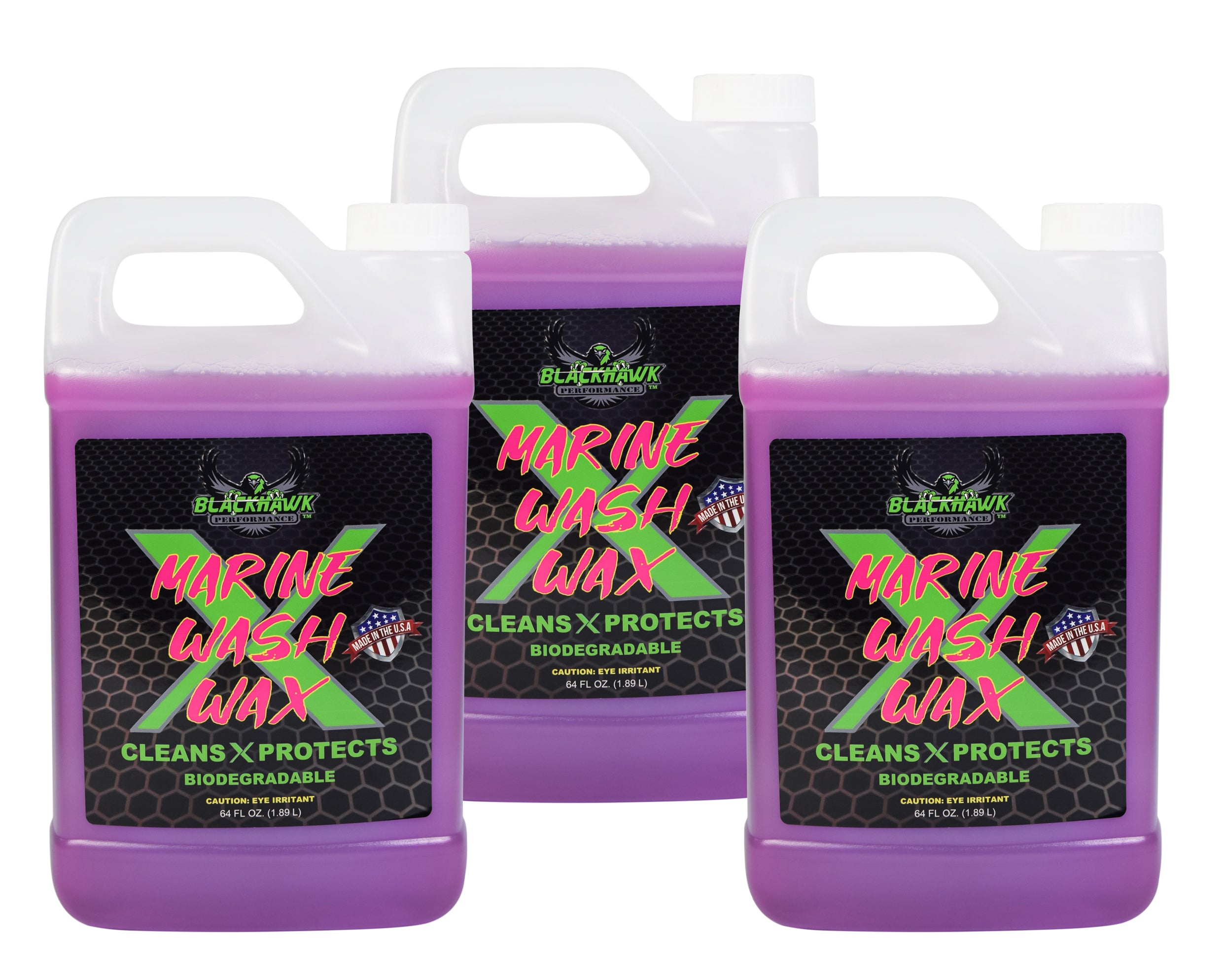 BLACKHAWK PERFORMANCE Boat Wash X Wax - Gently Removes All Dirt & Grime - Non-Yellowing Wax Leaves Shiny Finish While Protecting All Paints & Clear Coats - Marine Safe - Made in USA (64oz, 3pk)