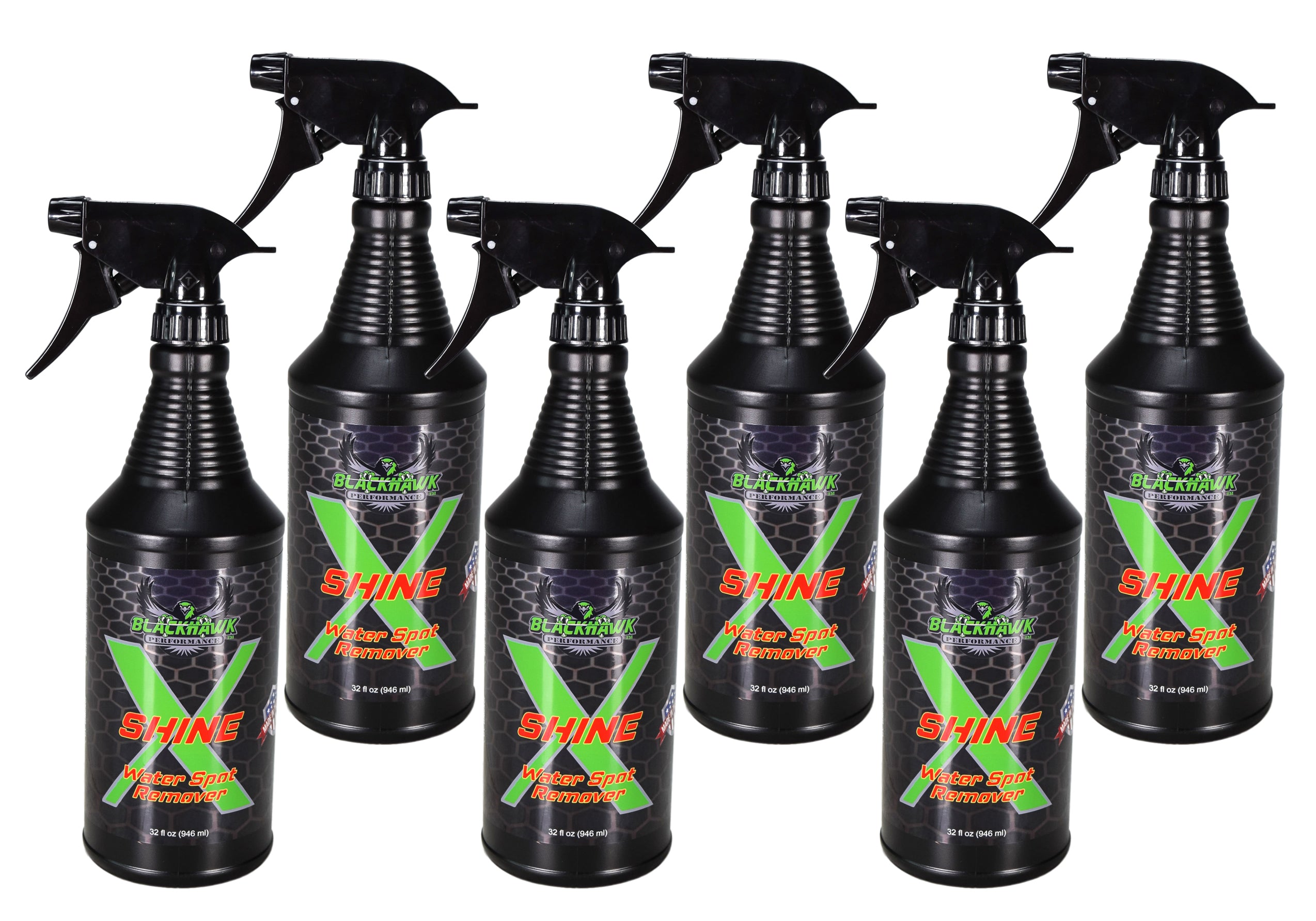 BLACKHAWK PERFORMANCE Shine X Hard Water Spot Remover - Gives Quick Shiny Gloss to Any Surface - Wipes Away Streak-Free - Marine Safe - Made in USA (32oz, 6pk)