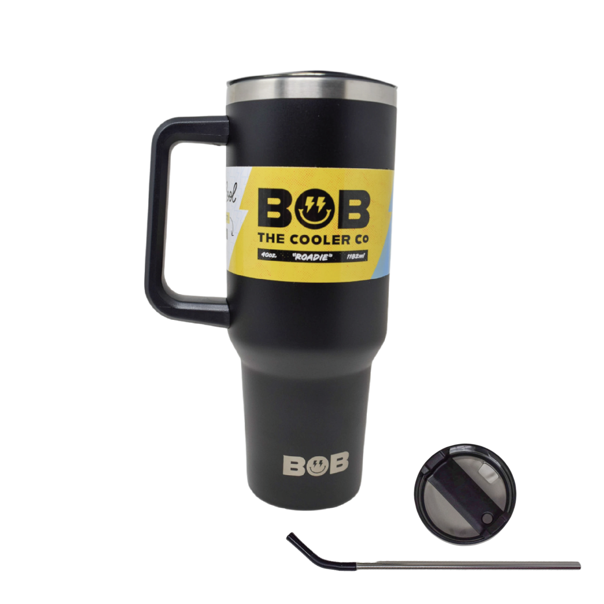 The 40oz "Roadie" tumbler from Bob The Cooler Co. Specifically engineered for thrill-seekers and couch potatoes alike....