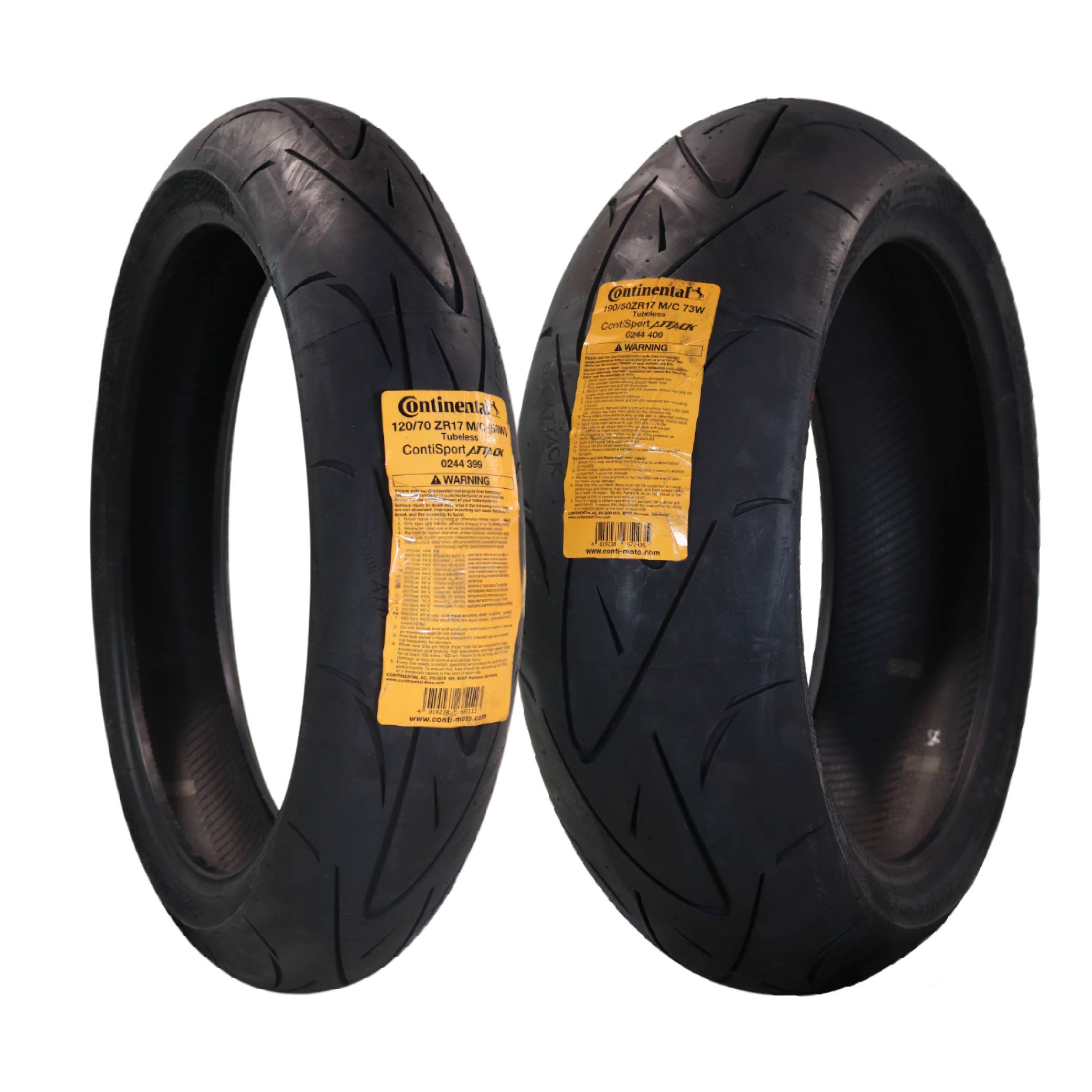 This sport motorcycle tire set includes a 120/70ZR17 front and 190/50ZR17 rear radial, designed to deliver precision...