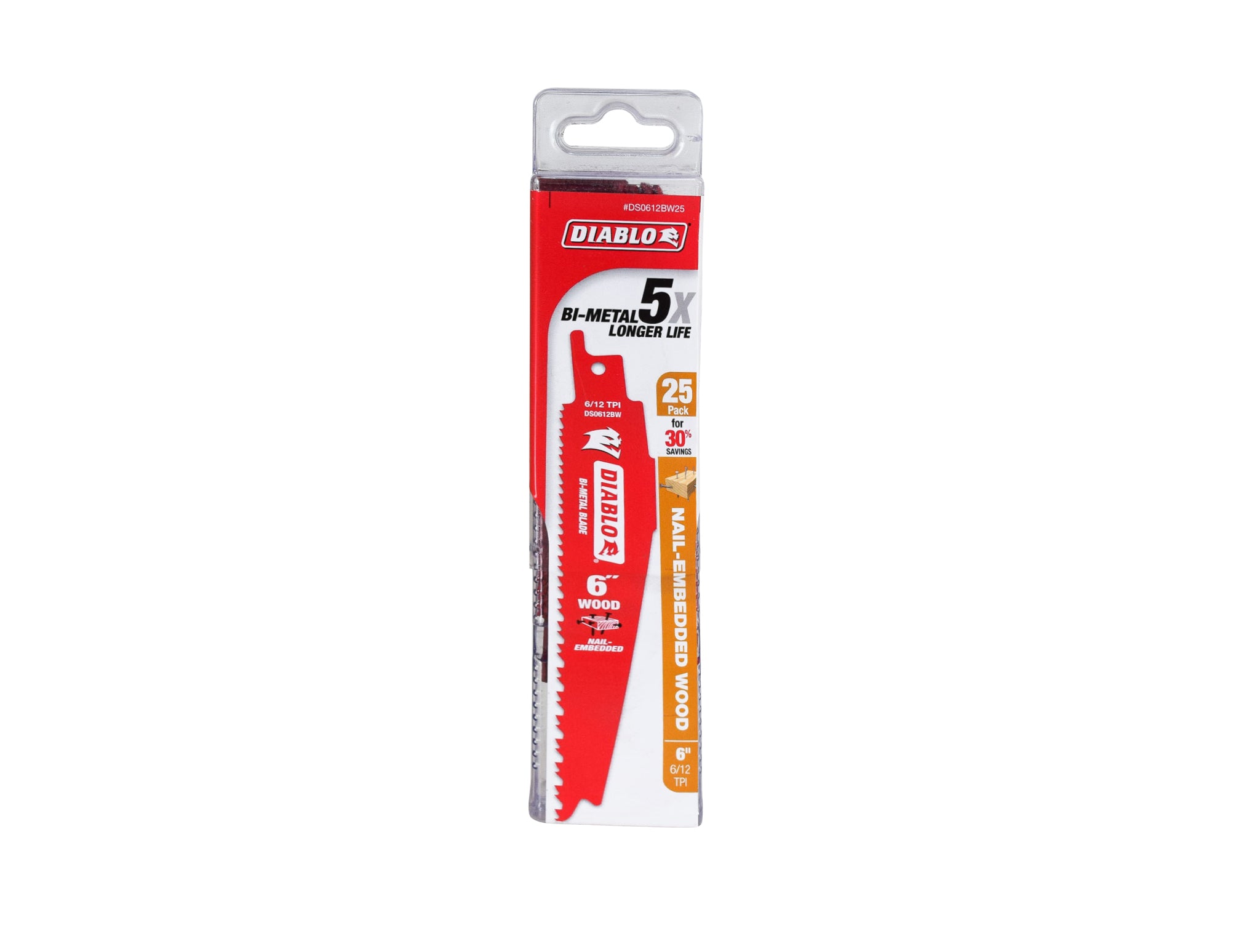 Diablo DS0612BW25 6" 6/12TPI Bi-Metal Reciprocating Saw Blades for Nail-Embedded Wood (25-Pack)