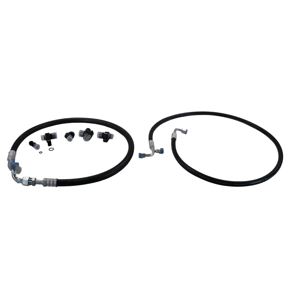 Technical Specifications: This professional-grade A/C line relocation kit features OEM-quality aluminum fittings, high-pressure rated hoses, and precision-bent hard lines designed to withstand the demanding conditions of diesel engine applications. All components are manufactured to exact OEM specifications with proper pressure ratings, temperature resistance, and corrosion protection. The kit maintains full R-134a refrigerant compatibility and preserves original system performance while providing the clearance needed for performance modifications.