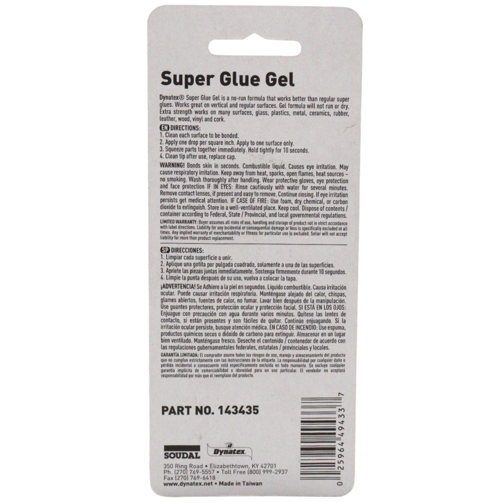 Dynatex 0.07 oz Super Glue Gel - No-Run Formula, Instant Bond, Bonds Metal Plastic Rubber Glass, Clear Permanent, Vertical Surfaces (48-Pack)