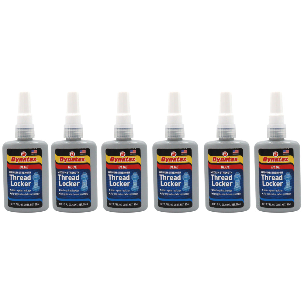 Dynatex Blue Medium Strength Threadlocker 1.69 oz Bottle - Removable with Hand Tools, Locks Fasteners on Metal, Vibration Resistant, Solvent Resistant (6-Pack)