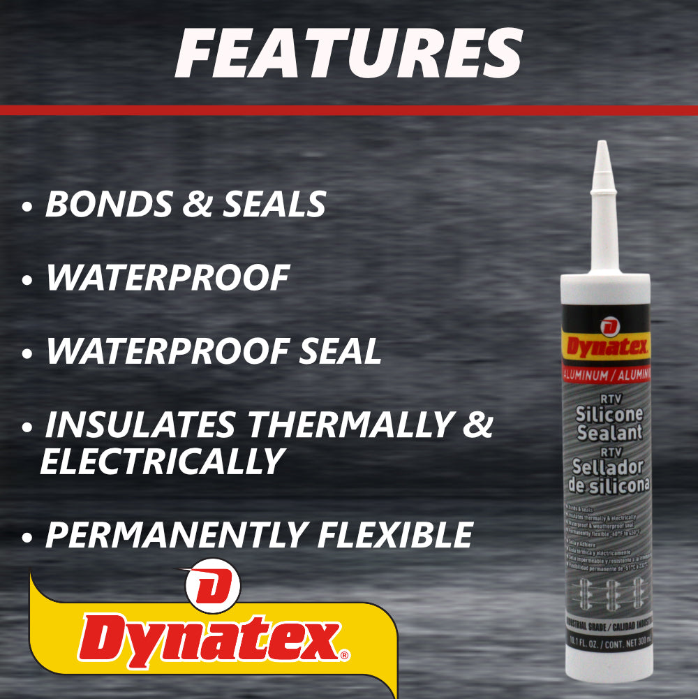 Dynatex Industrial Grade Aluminum Silicone Sealant 10.1 oz Caulk Tube - Tough Flexible Cure, Watertight Seal, Up to 500 Degrees F, Made in the USA (10-Pack)