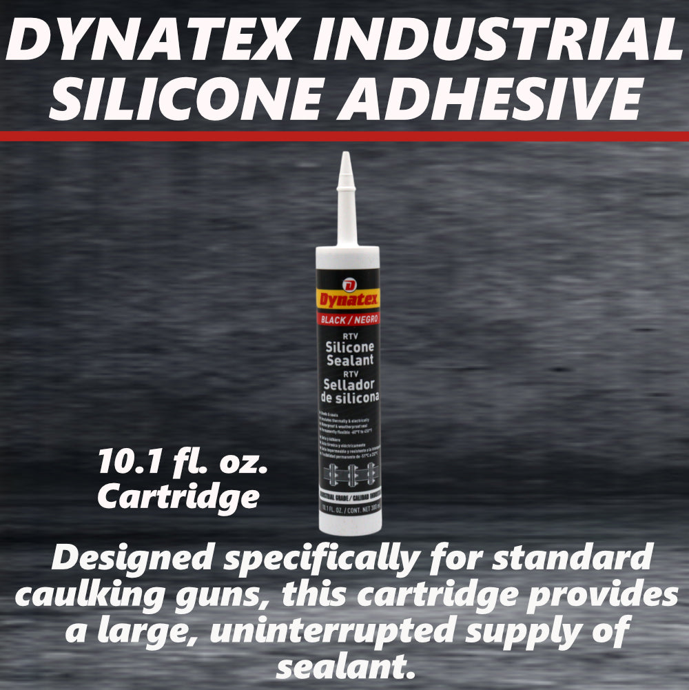 Dynatex Industrial Grade Black Silicone Sealant 10.1 oz Caulk Tube - Tough Flexible Cure, Watertight Seal, Up to 500 Degrees F, Made in the USA (Single)