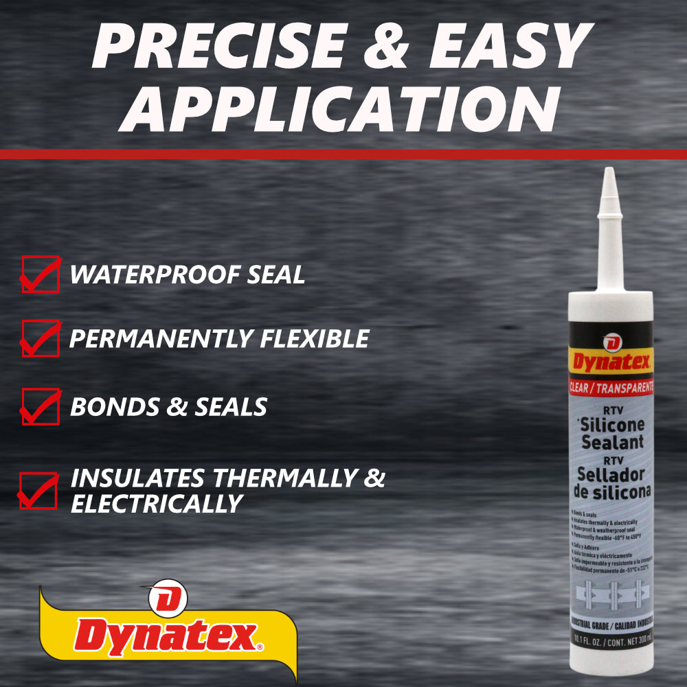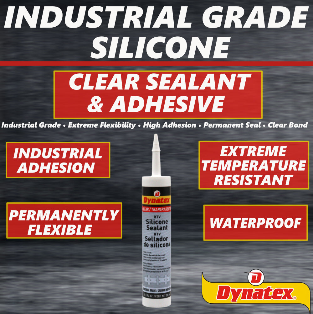 Dynatex Industrial Grade Clear Silicone Sealant 10.1 oz Caulk Tube - Tough Flexible Cure, Watertight Seal, Up to 500 Degrees F, Made in the USA (8-Pack)