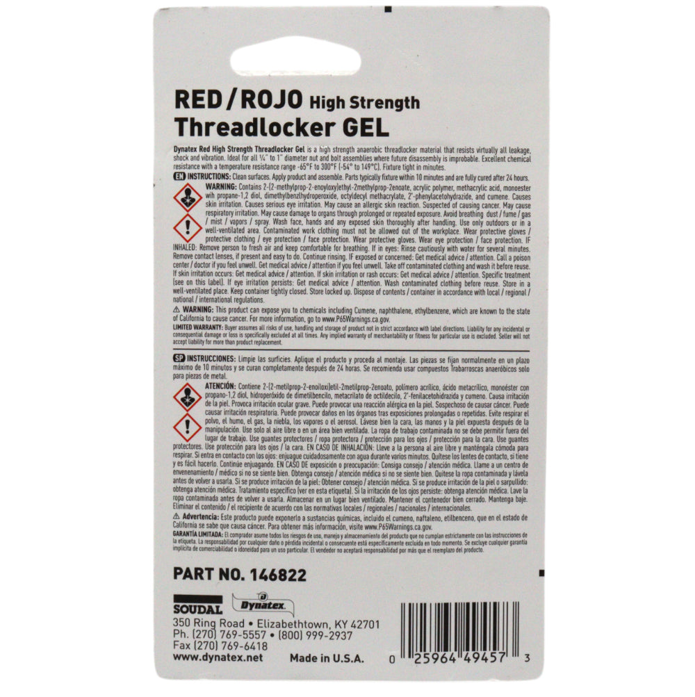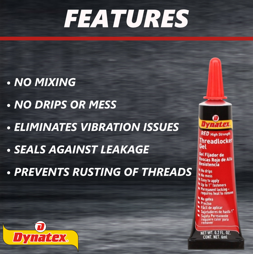 Dynatex Red High Strength Threadlocker 0.20 oz Bottle - Permanent Lock, Anaerobic, Large Fasteners, Vibration & Solvent Resistant (3-Pack)