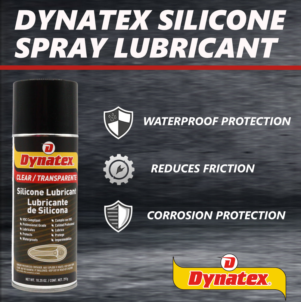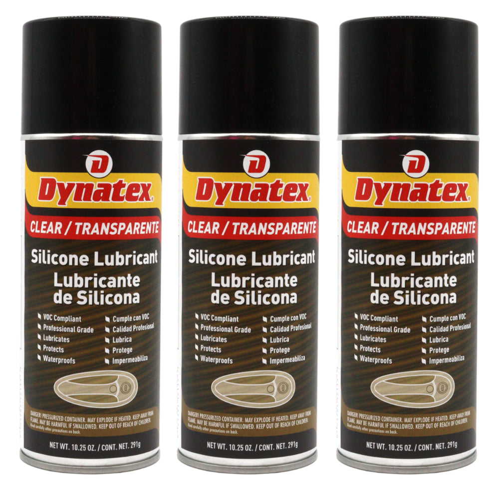 Dynatex Silicone Spray Lubricant 10.25 oz Aerosol Can - Dry Film, Waterproofs, Protects & Lubricates, Colorless Non-Toxic, Safe on Metal Plastic Rubber (3-Pack)