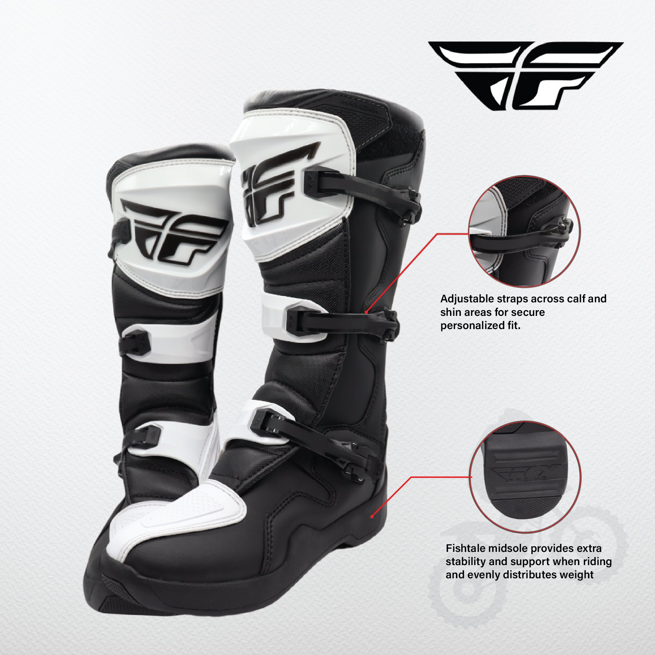 Fly Racing Maverik LT Boots, 2026 Model, (Adult - Size 9) CE Certified Motocross & Off-Road Motorcycle Boots, Adjustable Quick-Lock Buckles, Articulated Ankle Support, Rubber Heat Shield (White/Black)