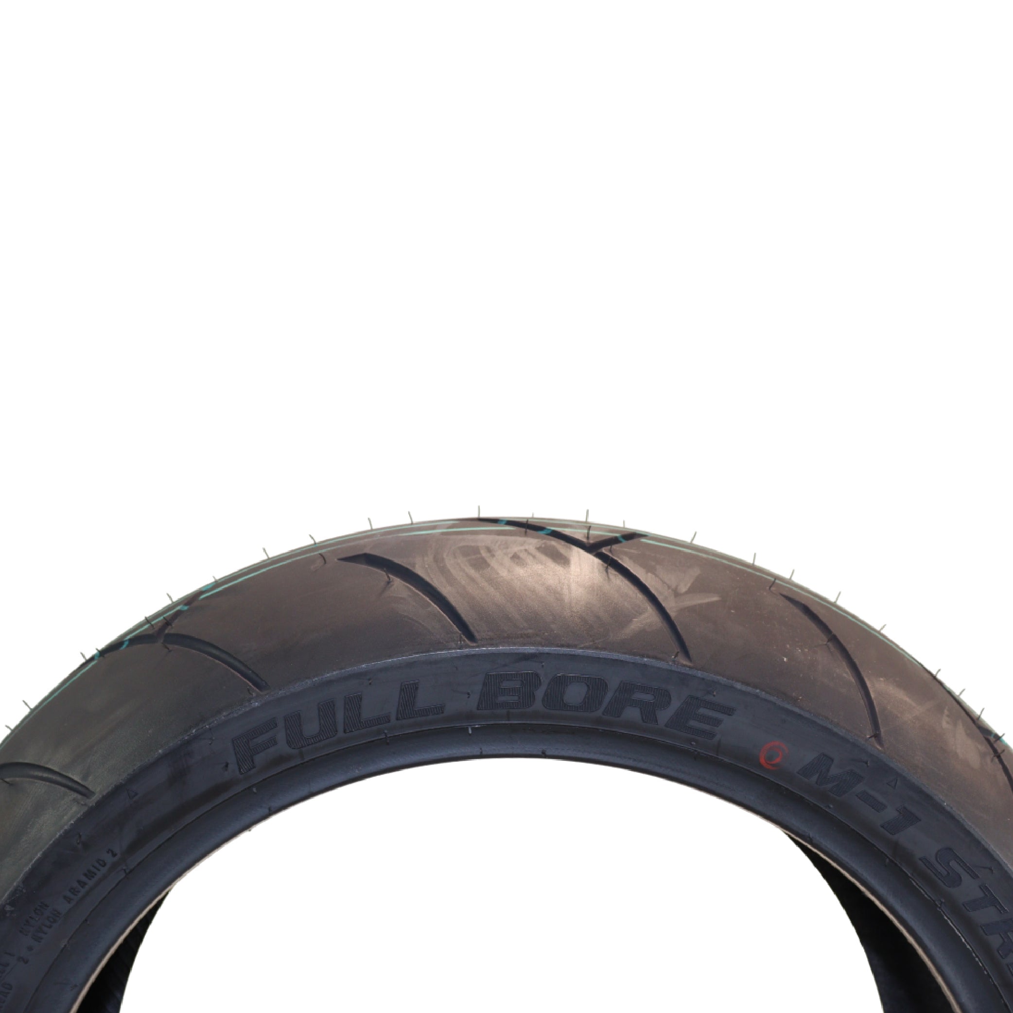 The Full Bore M1 120/70ZR17 and 190/55ZR17 (120/70-17 & 190/55-17) Front and Rear Motorcycle Tires is built for riders who demand performance, reliability, and value. Designed for street and sport bike enthusiasts, this high-performance radial tire delivers outstanding grip, responsive handling, and confident cornering, whether you're commuting, carving up back roads, or heading out for a weekend ride. With a tread pattern engineered for both dry and wet conditions, the M1 offers excellent traction and stability, even at higher speeds. Its durable construction and Z-rated performance make it a trusted choice for riders looking to upgrade their front tire without breaking the bank. At Full Bore Tires, we’re all about delivering high-quality performance tires without the premium price tag. Proudly family owned in the USA since 2008, we bring a personal touch to everything we do. Our team is made up of real riders who know what it takes to make a tire that performs when it matters most. We design our tires with a focus on grip, control, and long-lasting durability. The M1 series, for example, is perfect for riders who want that sweet spot between performance and value. We take pride in offering premium-quality tires at a competitive price point, making top-tier performance accessible to more riders without compromising safety or quality. At Full Bore, our mission is simple: to keep you riding with confidence, speed, and style. Because here at Full Bore, we don’t just ride, we Ride Wide Open.