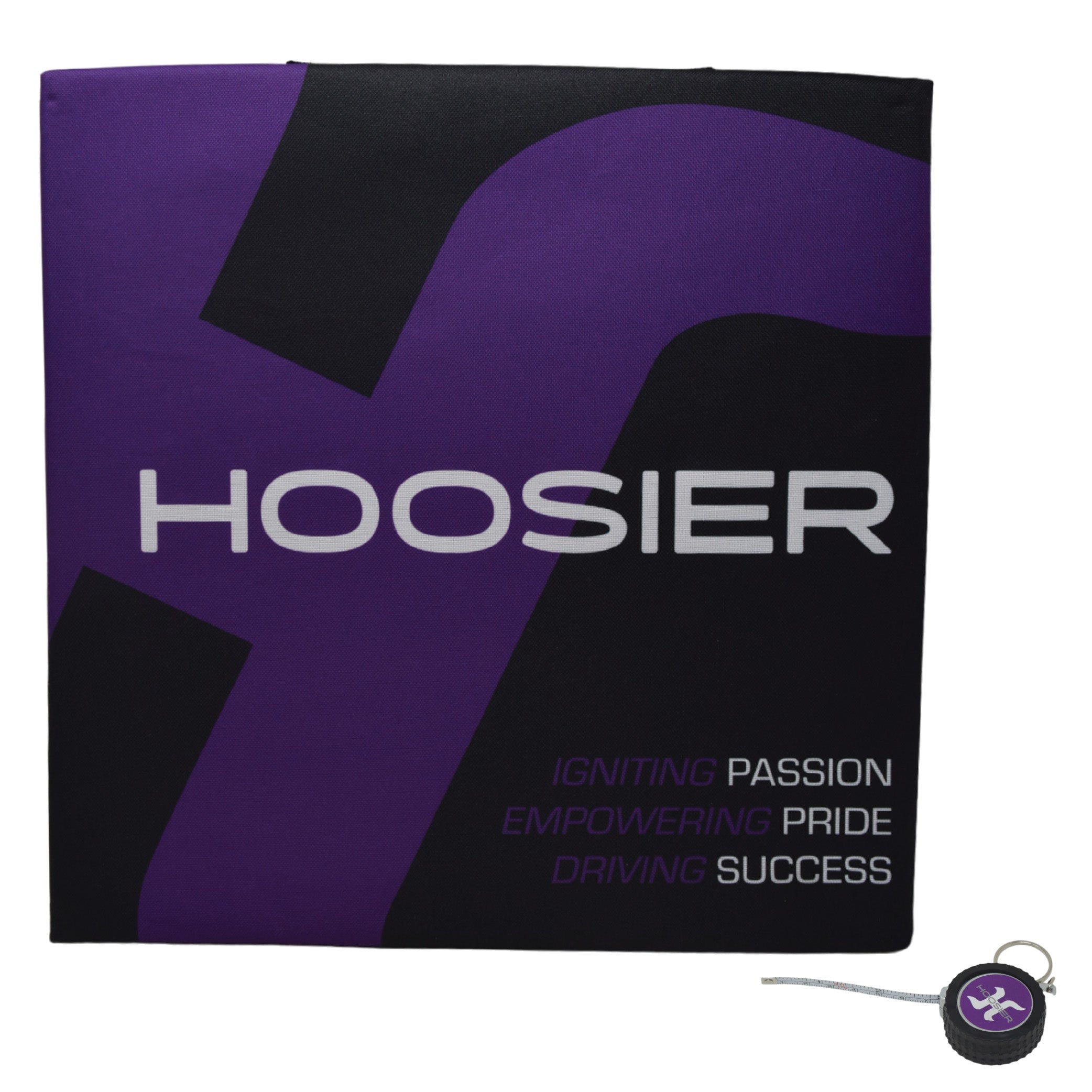 Hoosier Foam Seat Cushion - Purple and Black with Hoosier Brand Logo 14"x14"x2" - 24016000 with Hoosier Keychain Included