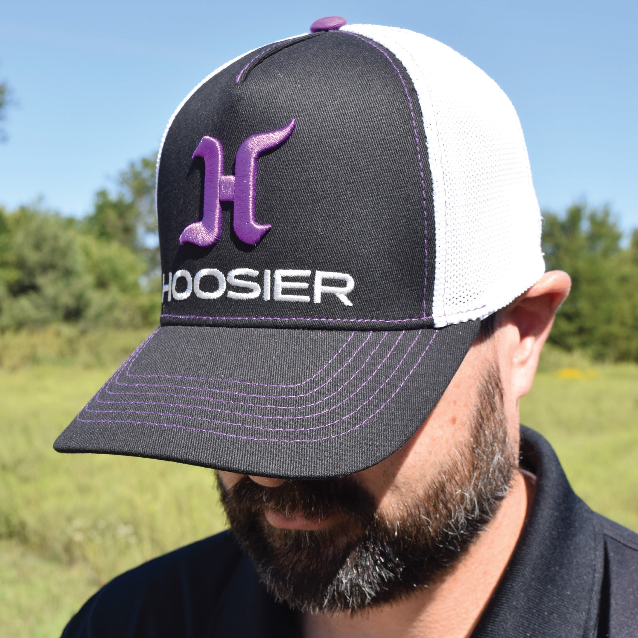 Hoosier Paddock Black Trucker Baseball Hat (L/XL) w/ Breathable White Mesh Back with Hoosier Keychain