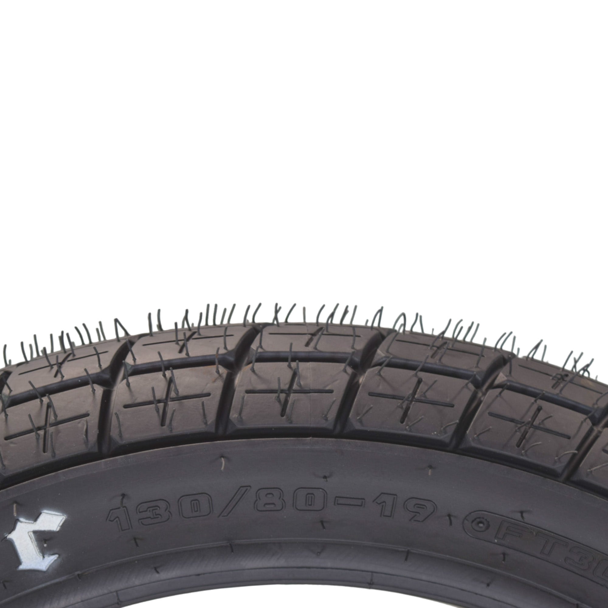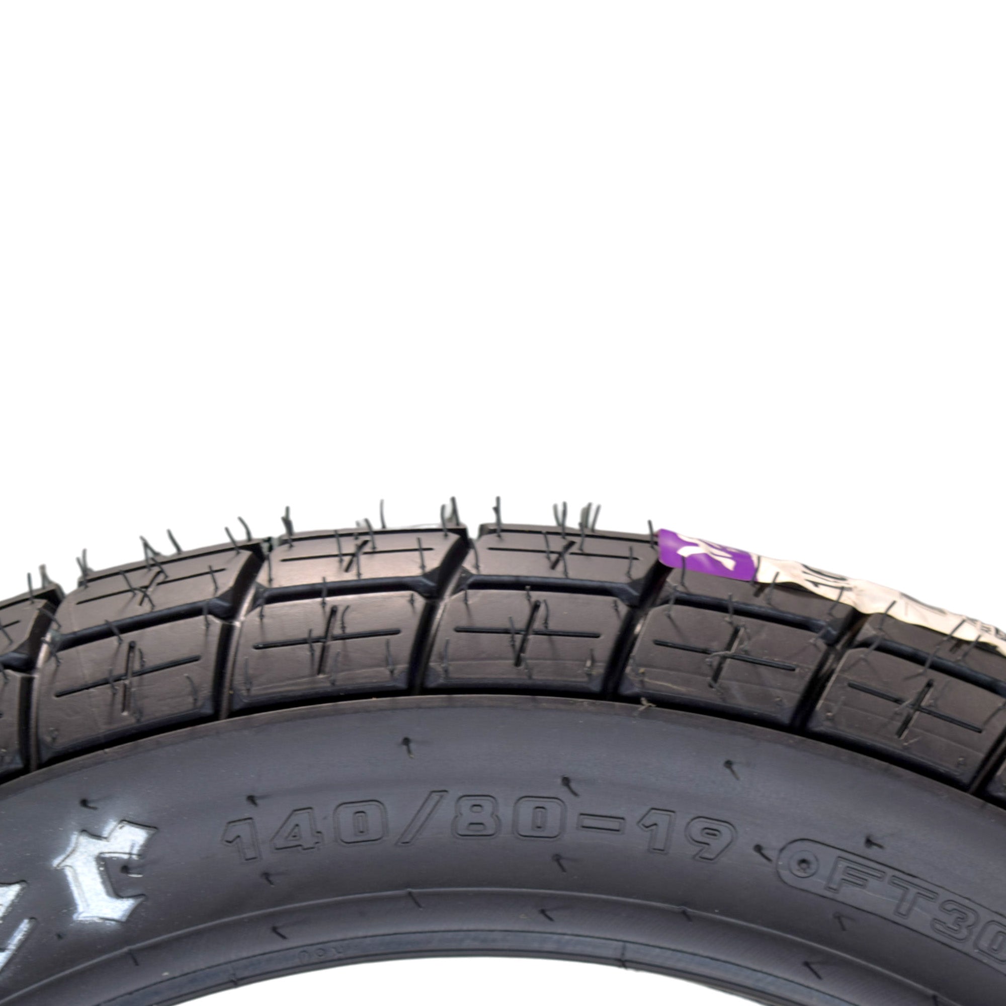 Hoosier Racing MX Tire Set: 130/80-19 FT30 Front & 140/80-19 FT30 Rear Dirt Bike Tube Type Tires for Flat Track Bikes with Hoosier Keychain. Unlock your Flat Track bike's full potential with the Hoosier Racing MX Tire Set, featuring the 130/80-19 FT30 front and 140/80-19 FT30 rear dirt bike tube-type tires. Specifically engineered for Flat Track bikes, this tire combination offers superior traction, stability, and durability to help riders dominate the track with confidence. The 130/80-19 FT30 front tire is built with an intermediate tread pattern, designed to provide exceptional grip and control on a variety of Flat Track surfaces, from hard-packed tracks to loose dirt. Crafted with the advanced FT30 compound, this tire delivers durability and reliability while maintaining high-performance handling and cornering precision. The 140/80-19 FT30 rear tire complements the front with its own intermediate tread design, ensuring consistent stability and traction under demanding riding conditions. The FT30 compound is optimized for longevity and performance, allowing riders to push their limits and achieve optimal cornering speed. Together, these tires form a dynamic set tailored to the unique demands of Flat Track racing. Backed by Hoosier Racing Tire's legacy of quality and innovation, this tire set provides riders with the tools they need to stay ahead of the competition and achieve victory. Complete with a Hoosier Keychain, this set is perfect for Flat Track enthusiasts who demand style, performance, and reliability. Equip your Flat Track bike with the Hoosier Racing MX Tire Set and experience unparalleled traction, control, and durability. Trust Hoosier Racing Tire to elevate your performance and help you dominate the track with speed and confidence.