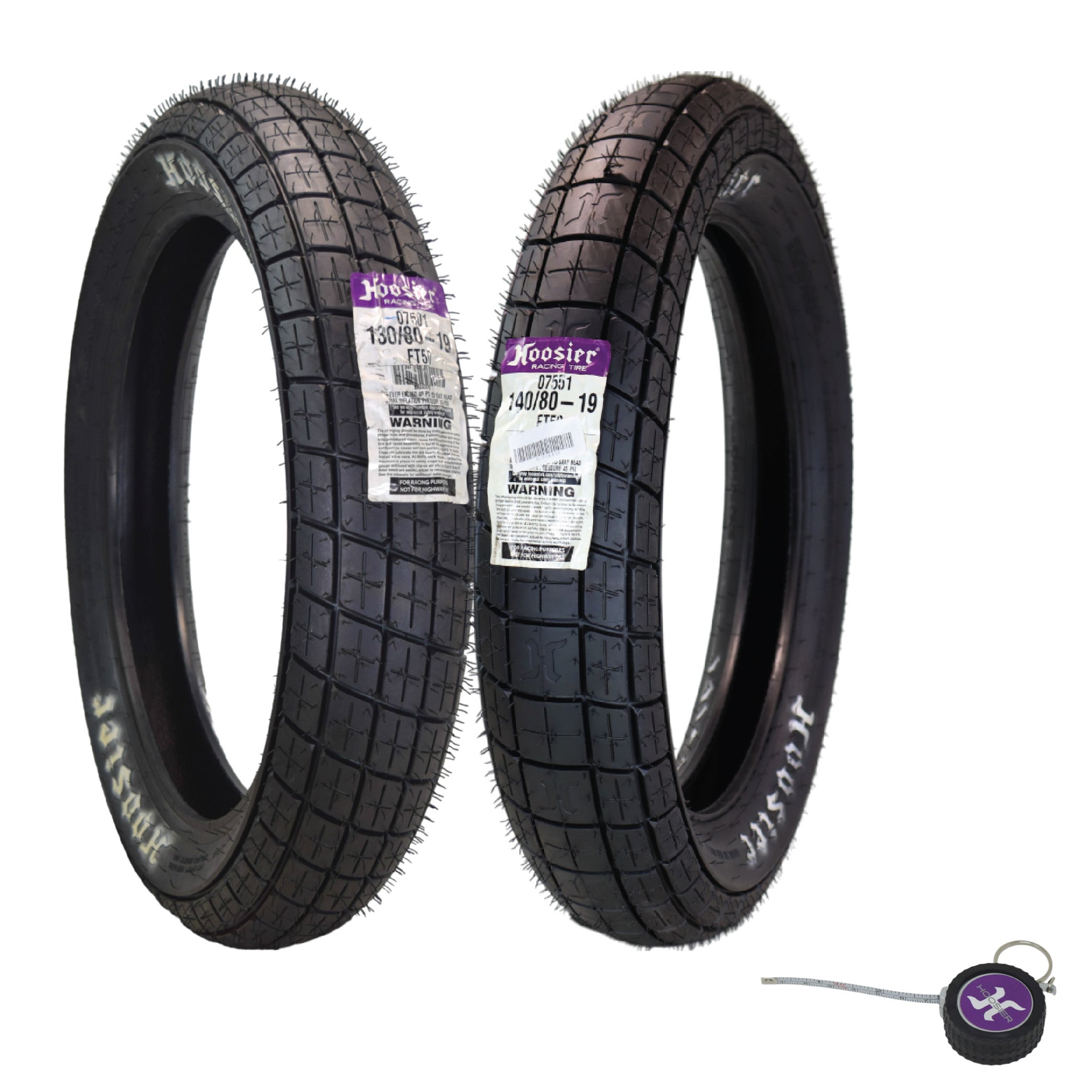 Hoosier Racing Tire Set: 130/80-19 FT50 Front & 140/80-19 FT50 Rear Dirt Bike Tube Type Tires for...