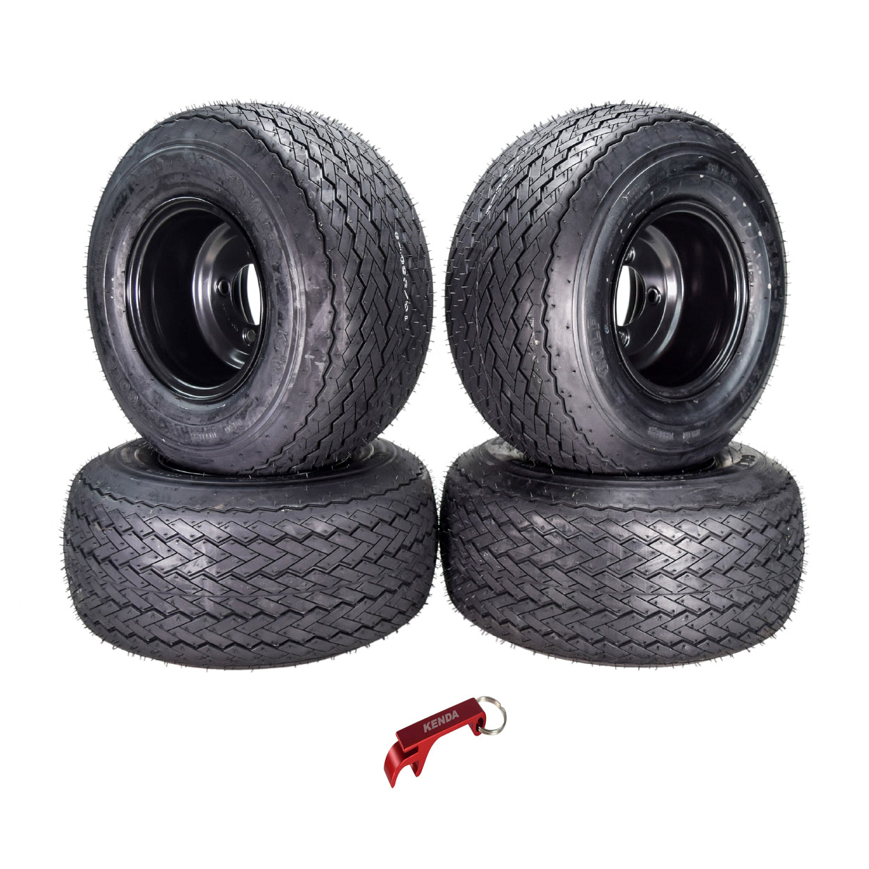 Kenda Hole-N-1 K389 18x8.5-8 Golf Cart Tire with 4-Ply Rating & Pre-Assembled Semi-Gloss Black Wheel with Keychain - Hole in one 18/8.5/8 - 4-Pack