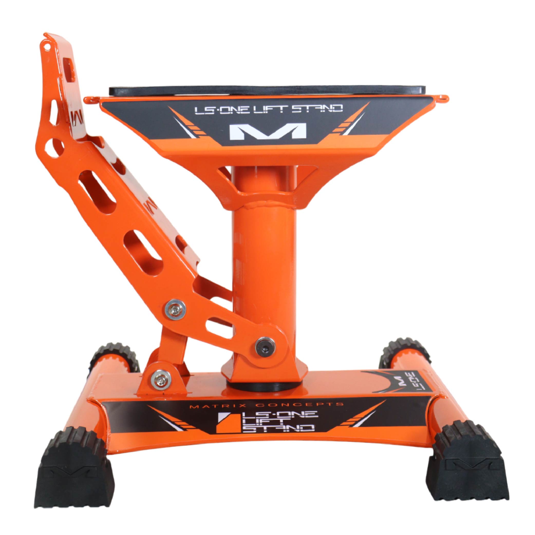 Matrix Concepts LS-ONE Lift Stand - Orange | Foot-Operated 500 lb Motorcycle Lift | Carbon Steel Motocross Dirt Bike Jack | Self-Locking Pedal & Wide Platform with Carry Handles