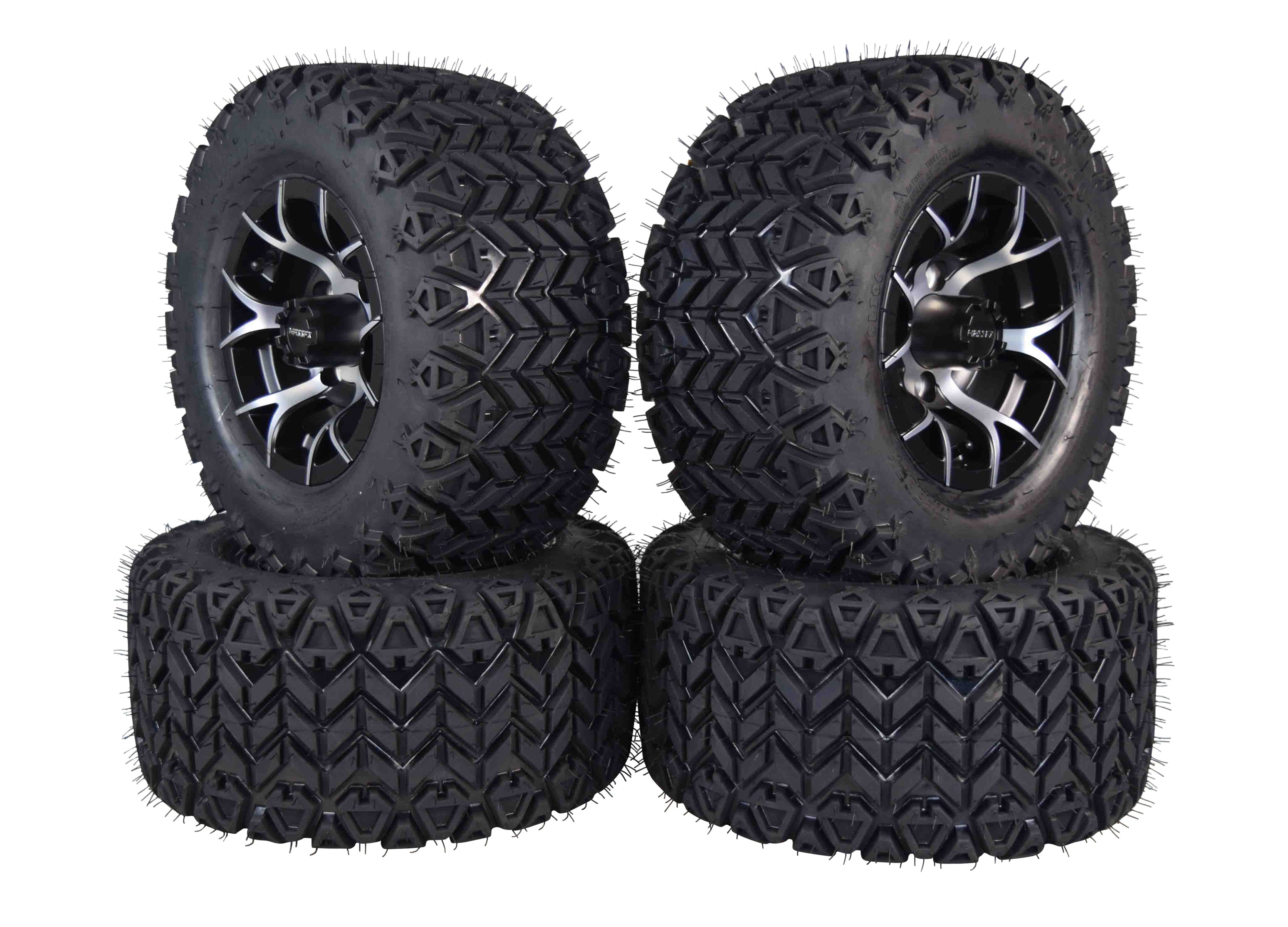 MASSFX SL 20x10-10 F/R Golf Cart Tire, PIT VIPER Black Wheels10x7 4/101.6 4pk