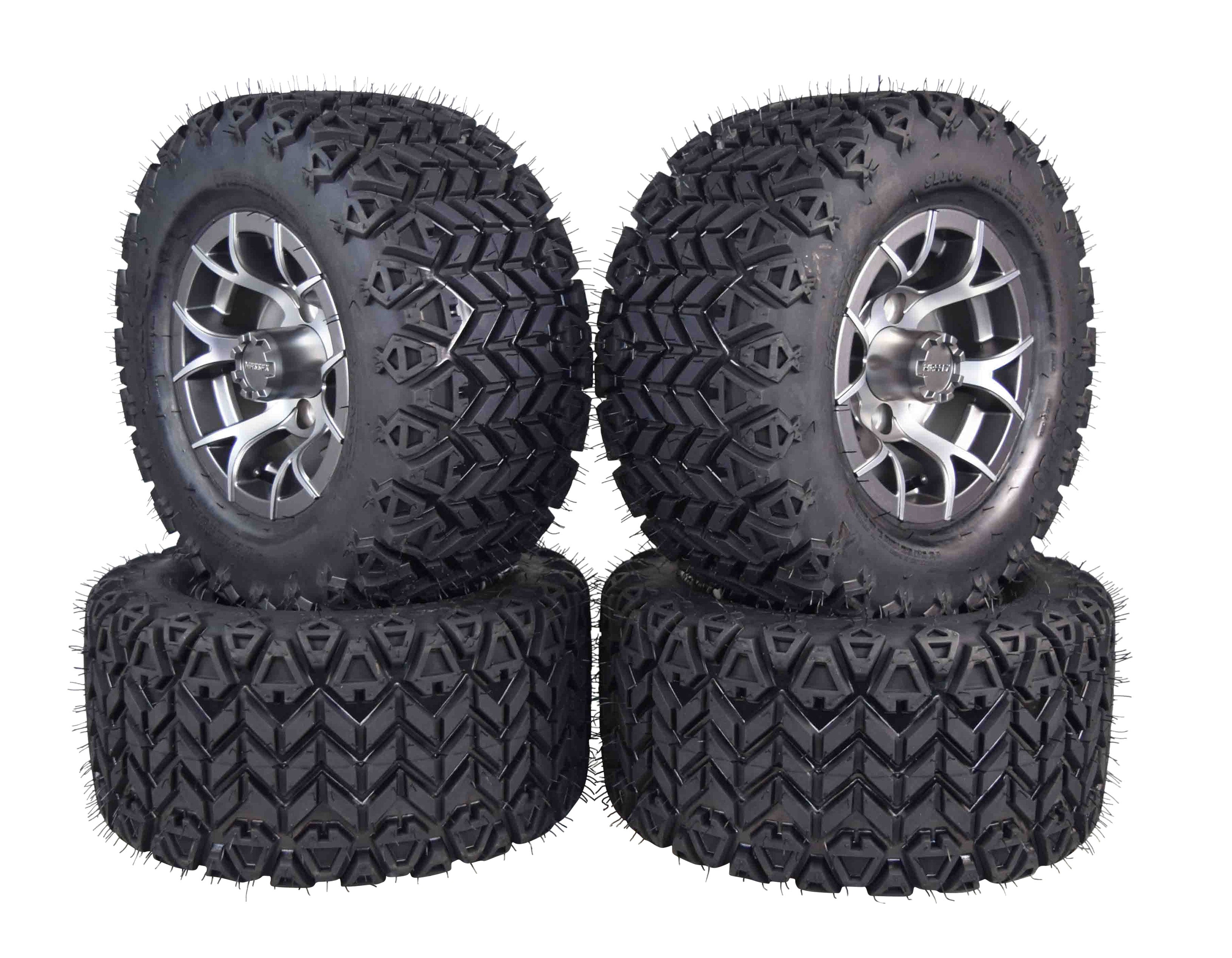 MASSFX SL 20x10-10 F/R Golf Cart Tire, PIT VIPER Grey Wheels10x7 4/101.6 4pk