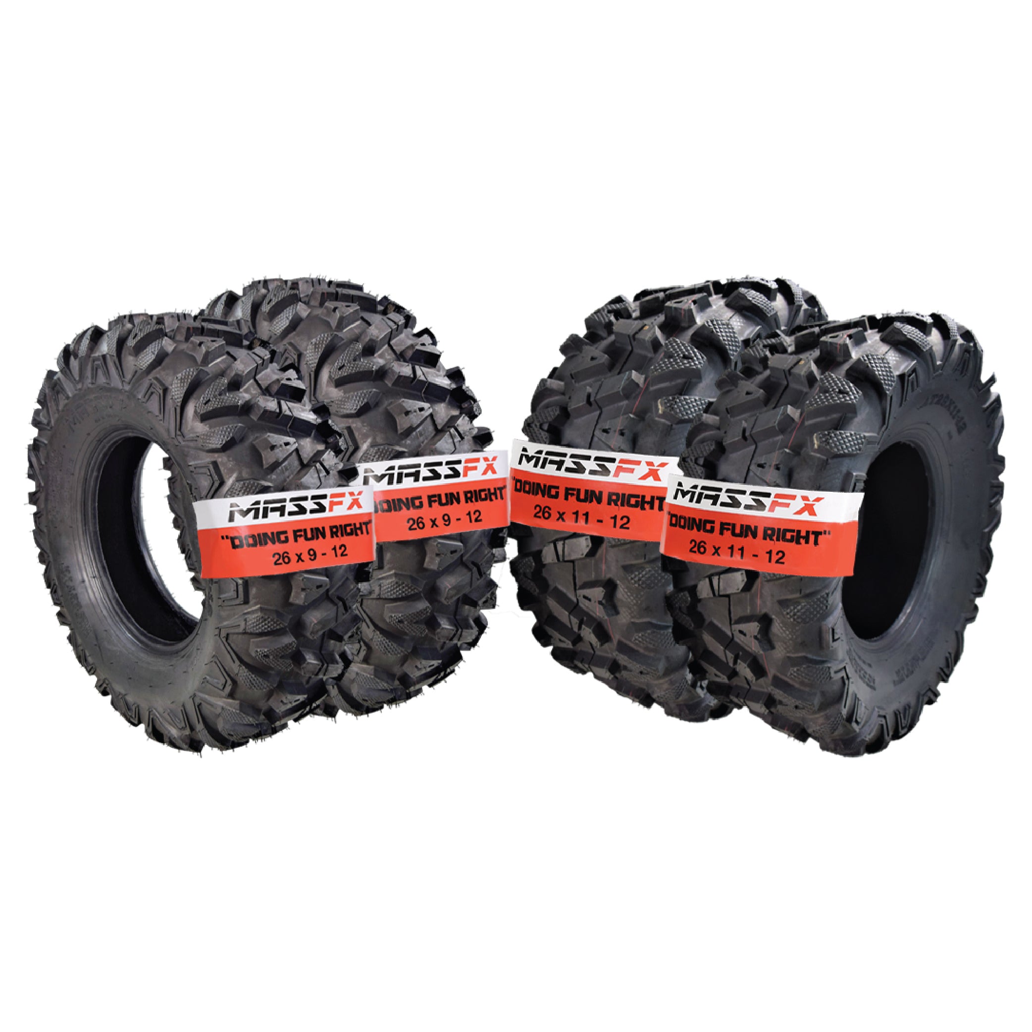 MASSFX 26x9-12 Front (2) & 26x11-12 Rear (2) Tires for ATV, UTV, & SxS (4-pk)