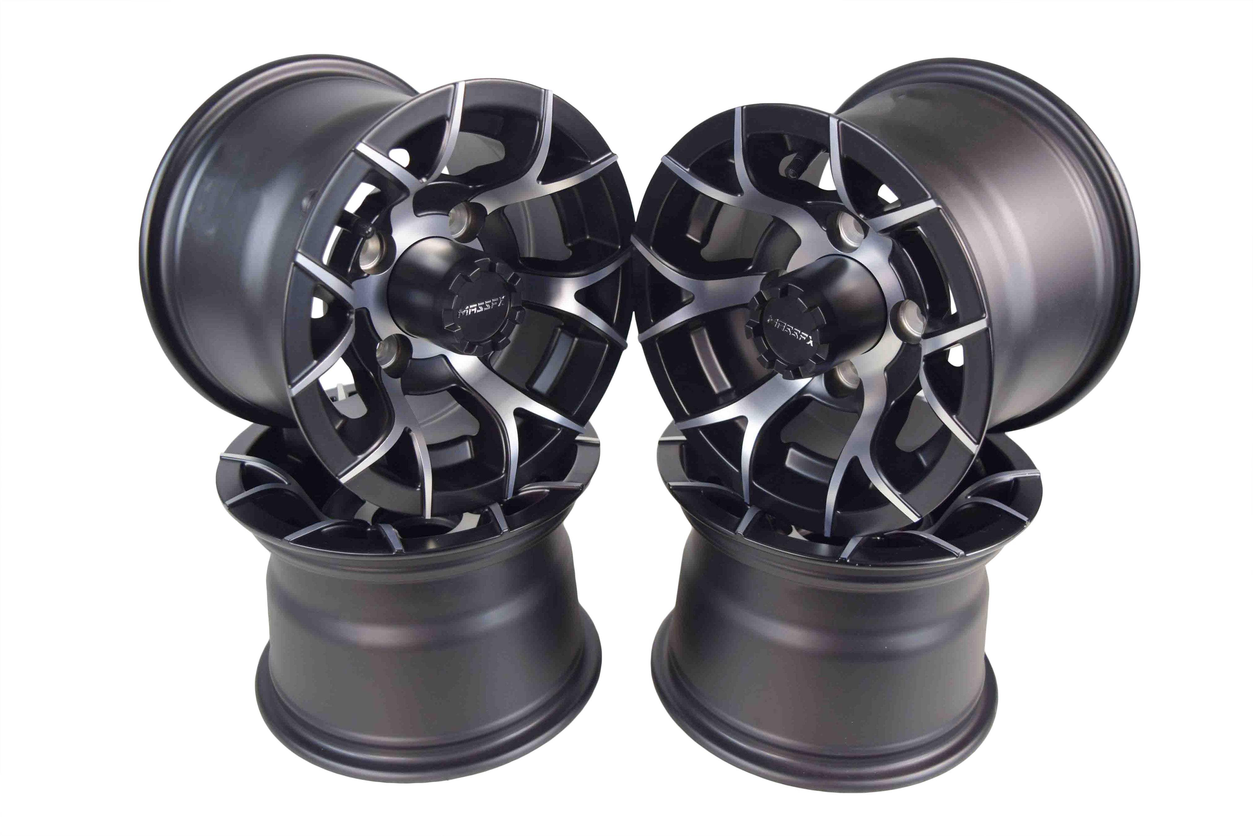 MASSFX 10x7 Golf Cart Rims with 4/101.6 or 4 on 4" Bolt Pattern-Matte Black-4 pk