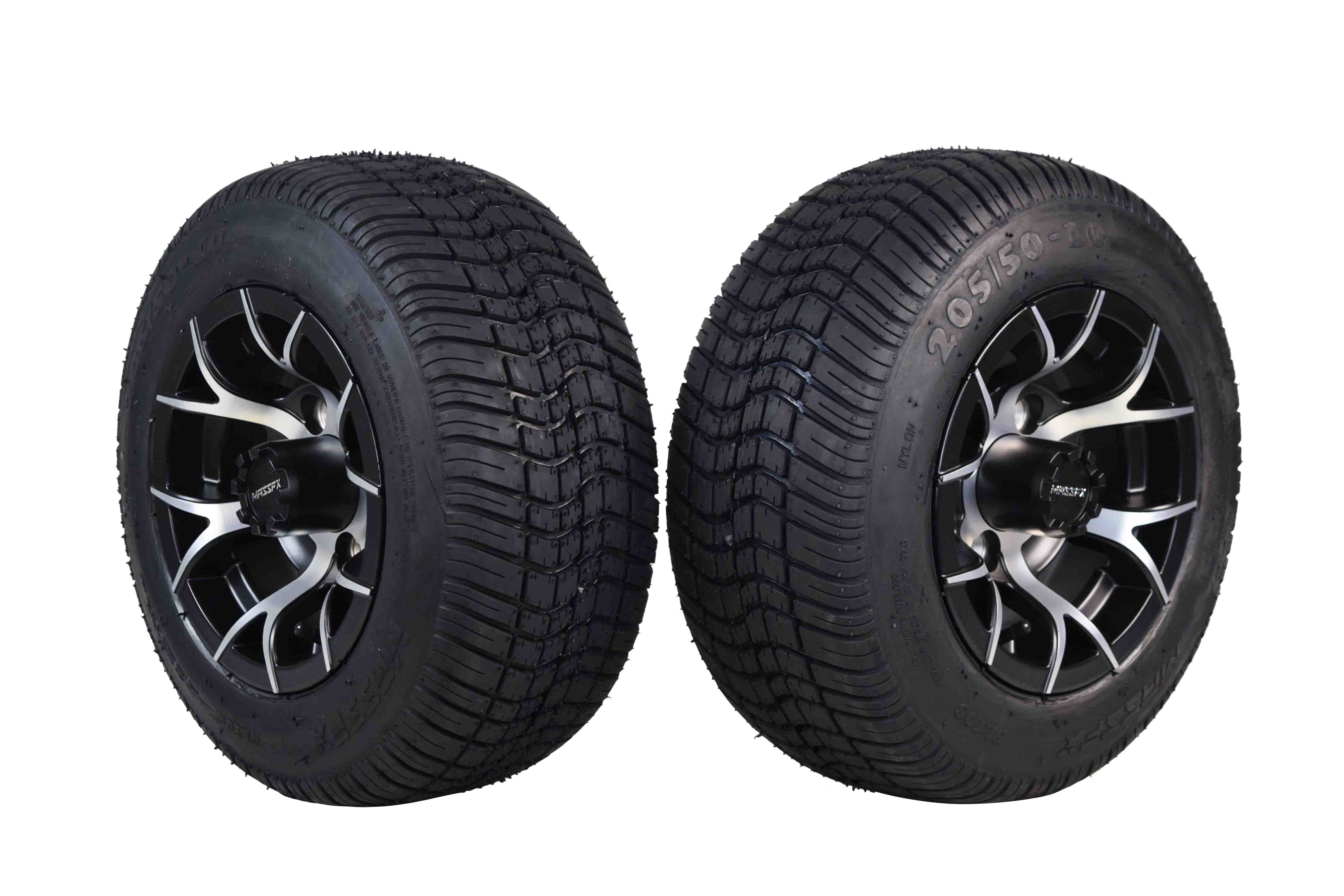 MASSFX SL 205/50-10 F/R Golf Cart Tire, PIT VIPER Black Wheels 10x7 4/101.6 2pk