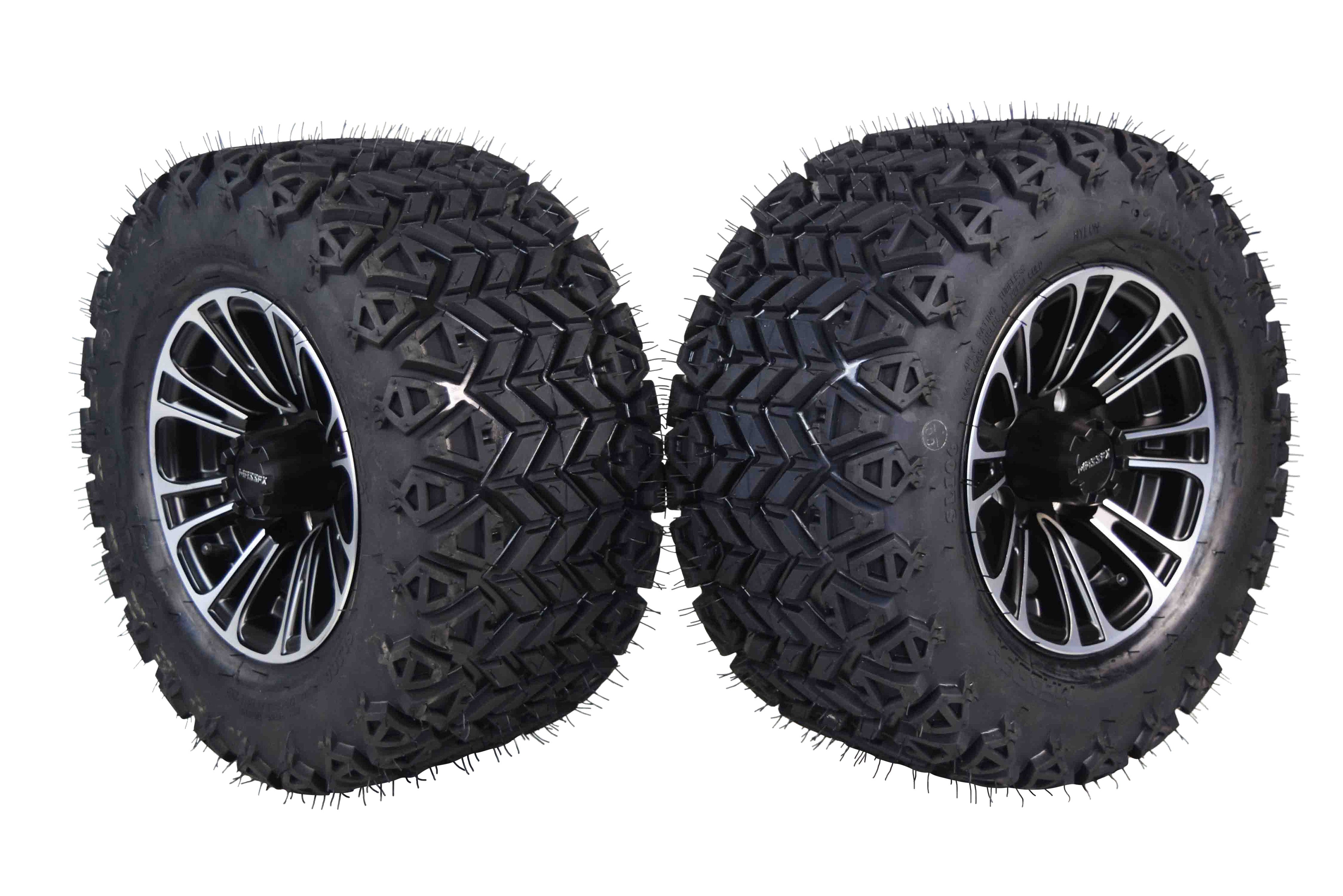 MASSFX SL 20x10-10 Front/Rear Golf Cart Tire, QUAKE Black Wheel 10x7 4/101.6 2pk