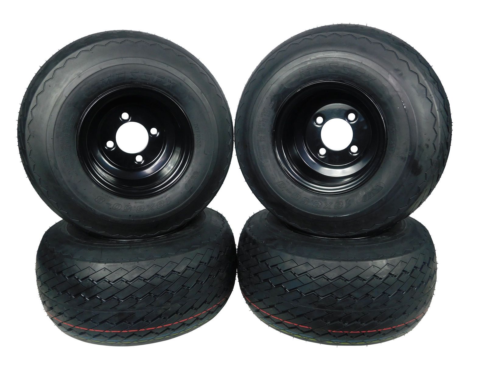 MASSFX Wheel Tire Combo 18x8.5-8 Golf Cart Tire Black 4/4 Rim 4-PACK