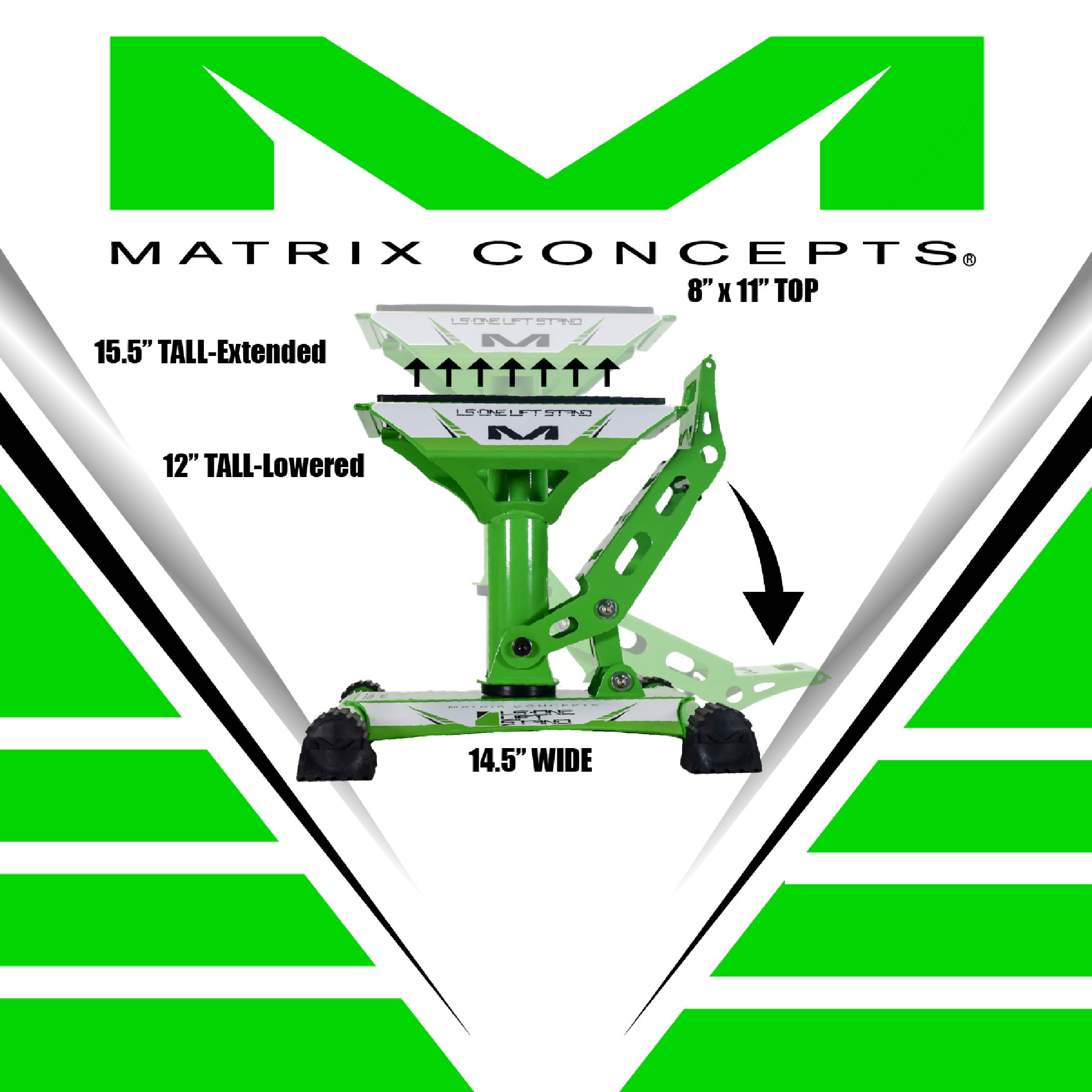 Matrix Concepts LS-ONE Lift Stand /Mass Depot Sticker Pack - Green | Foot-Operated 500 lb Motorcycle Lift | Carbon Steel Motocross Dirt Bike Jack | Self-Locking Pedal & Wide Platform w/ Carry Handles