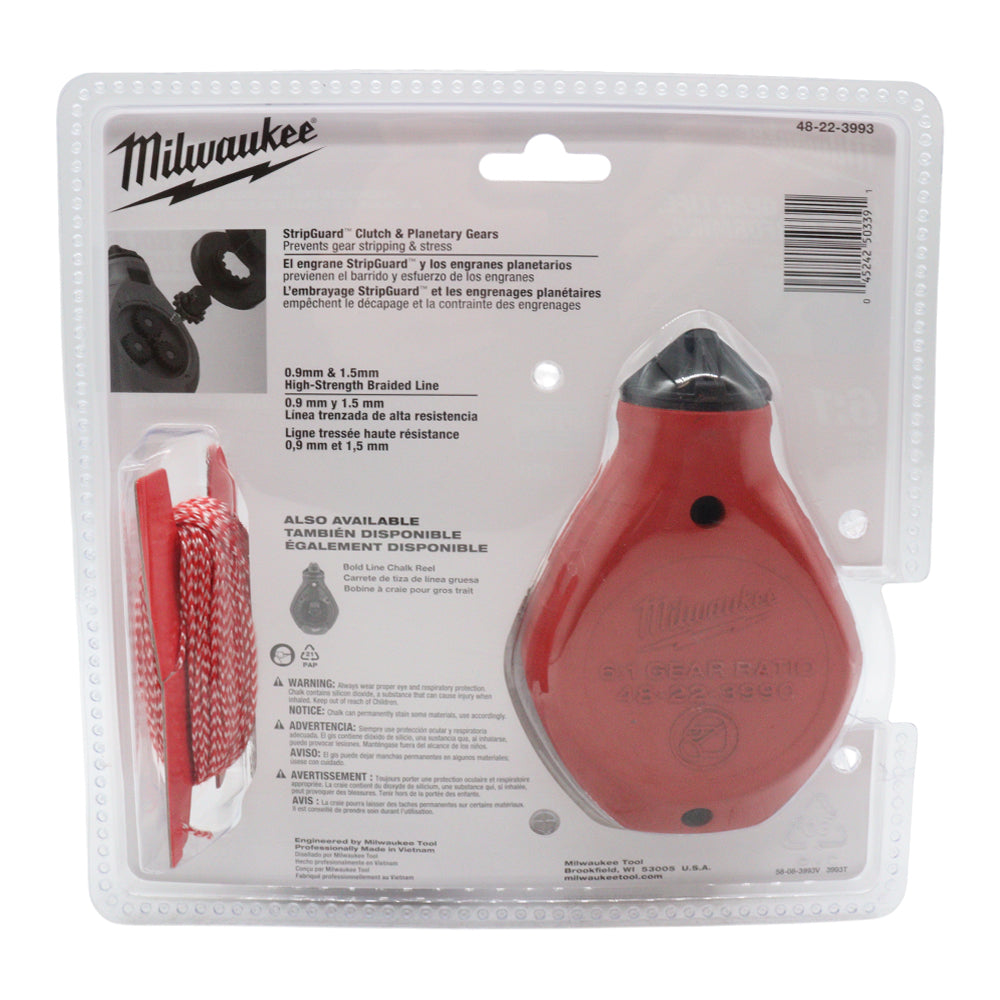 Milwaukee 100 ft Precision Line Chalk Reel Kit – Heavy-Duty Aluminum Chalk Reel with StripGuard™ Clutch, Planetary Gear System, Bonus Bold Line & Blue Chalk for Clean Marking on Construction Sites