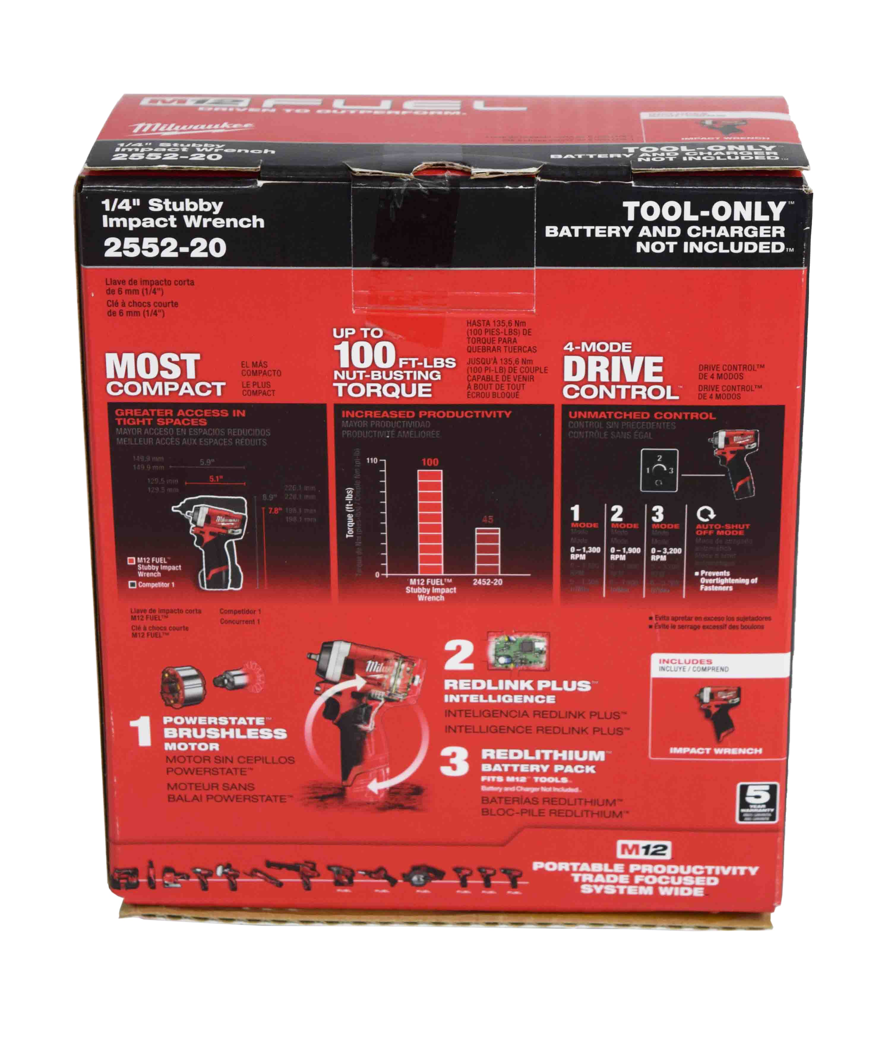 Milwaukee 2552-20 M12 FUEL 1/4inch Cordless Stubby Impact Wrench (Bare Tool Only)