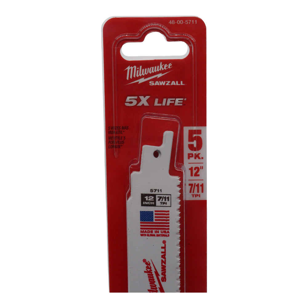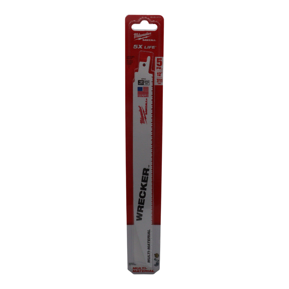 Milwaukee 48-00-5711 12 in. Wrecker Demolition Multi-Material Cutting Sawzall Reciprocating Saw Blades (5 Pack)