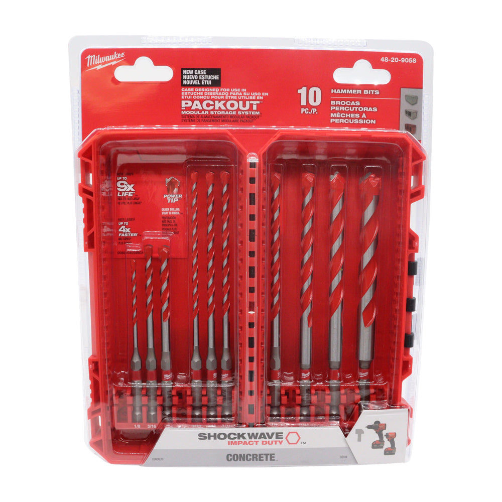Milwaukee 48-20-9058 Shockwave Carbide Hammer Drill Bit Set. (10-Piece) - Robust carbide for up to 9x life in concrete