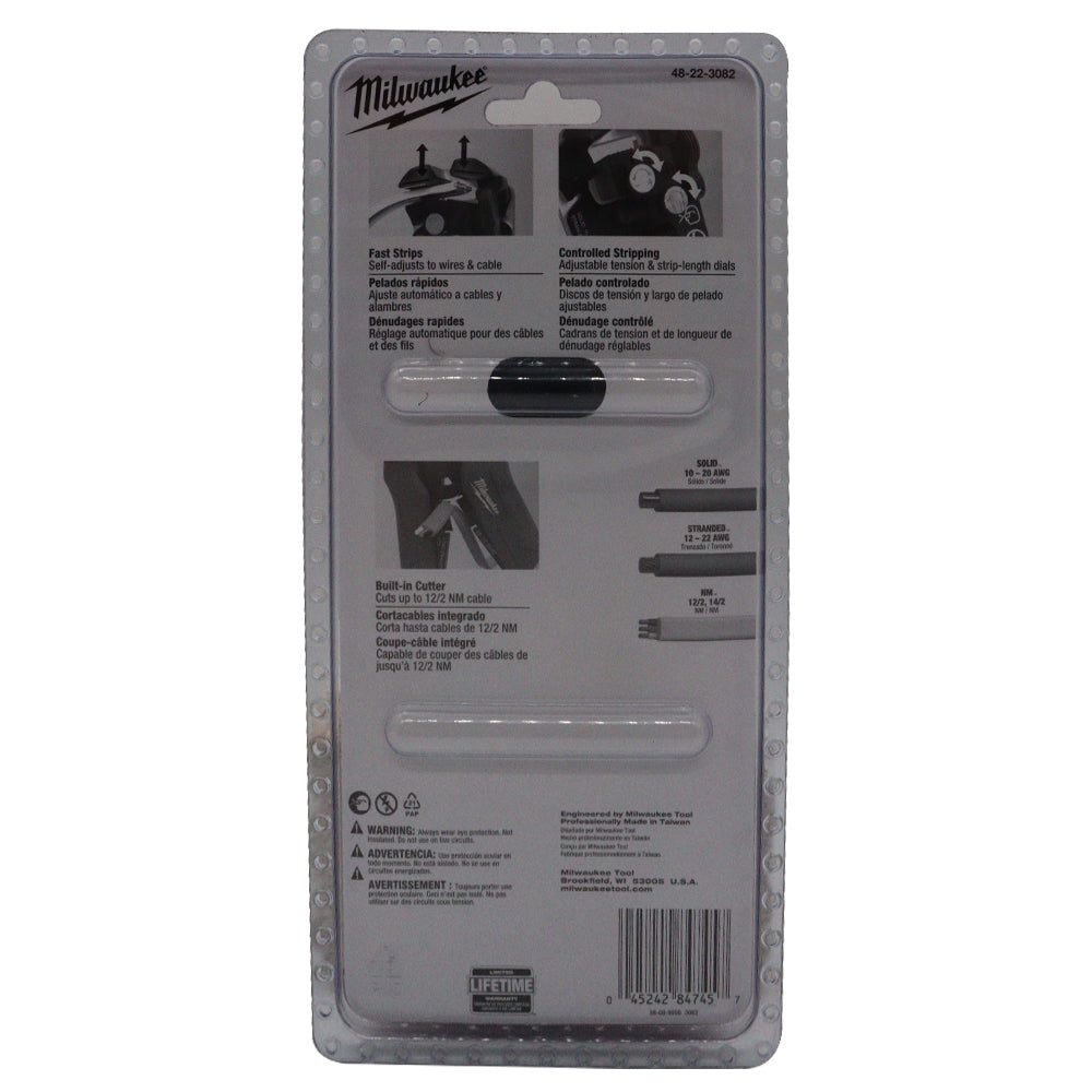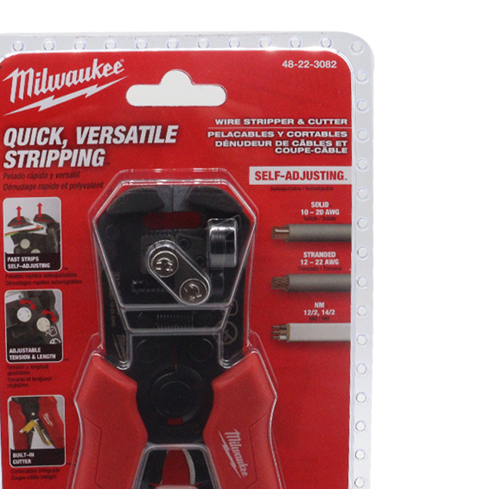 Milwaukee 48-22-3082 Self-Adjusting Wire Stripper & Cutter – Professional 10-20 AWG Solid, 12-22 AWG Stranded & 12/2-14/2 NM Cable Stripping Tool with Adjustable Tension, Depth Stop