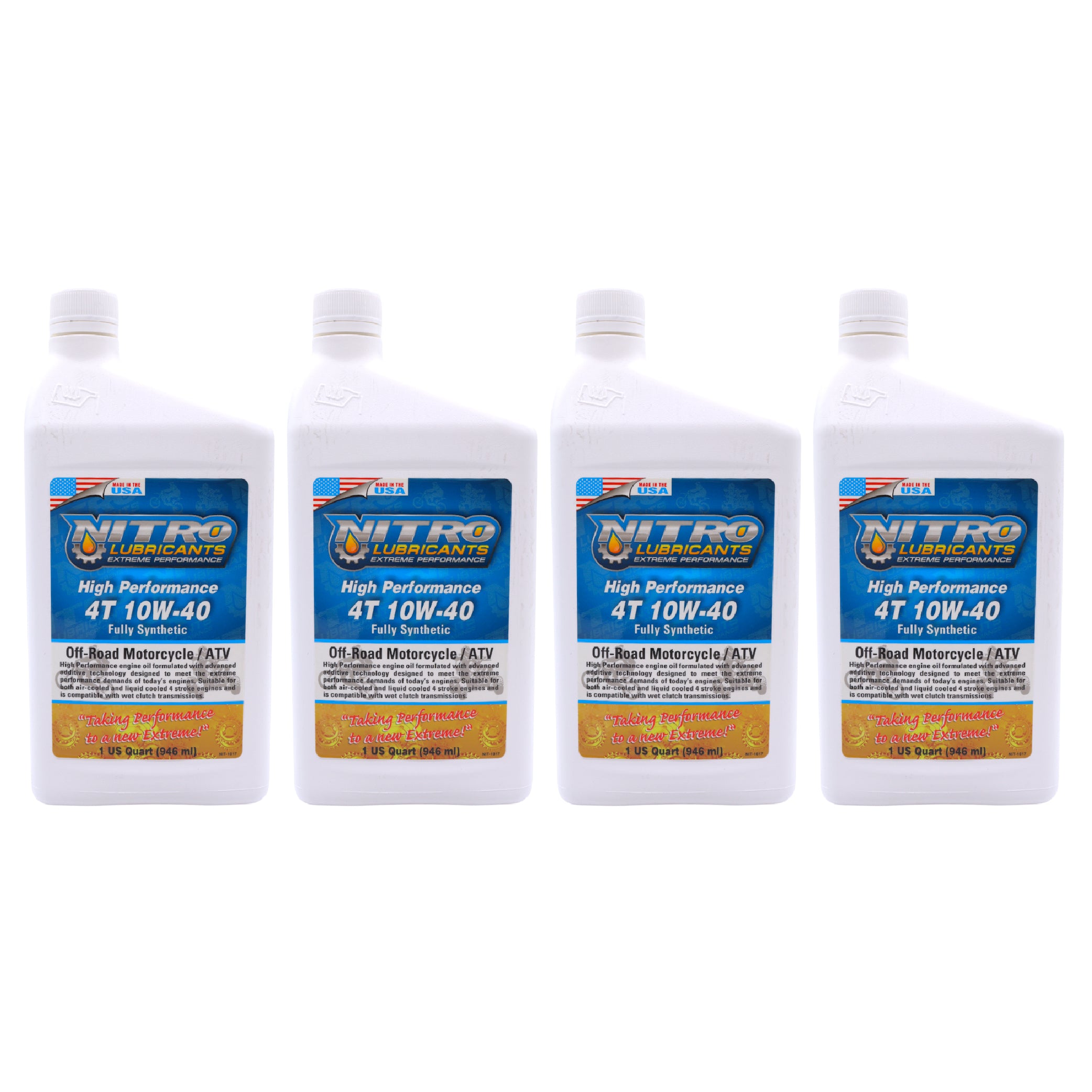 Nitro Lubricants 10W-40 4 Stroke Engine Oil – Semi-Synthetic, High Performance Formula for Motorcycles, ATVs & UTVs – Racing & Off-Road – Advanced Additive Technology – 1 Quart – Made in USA (4-Pack)