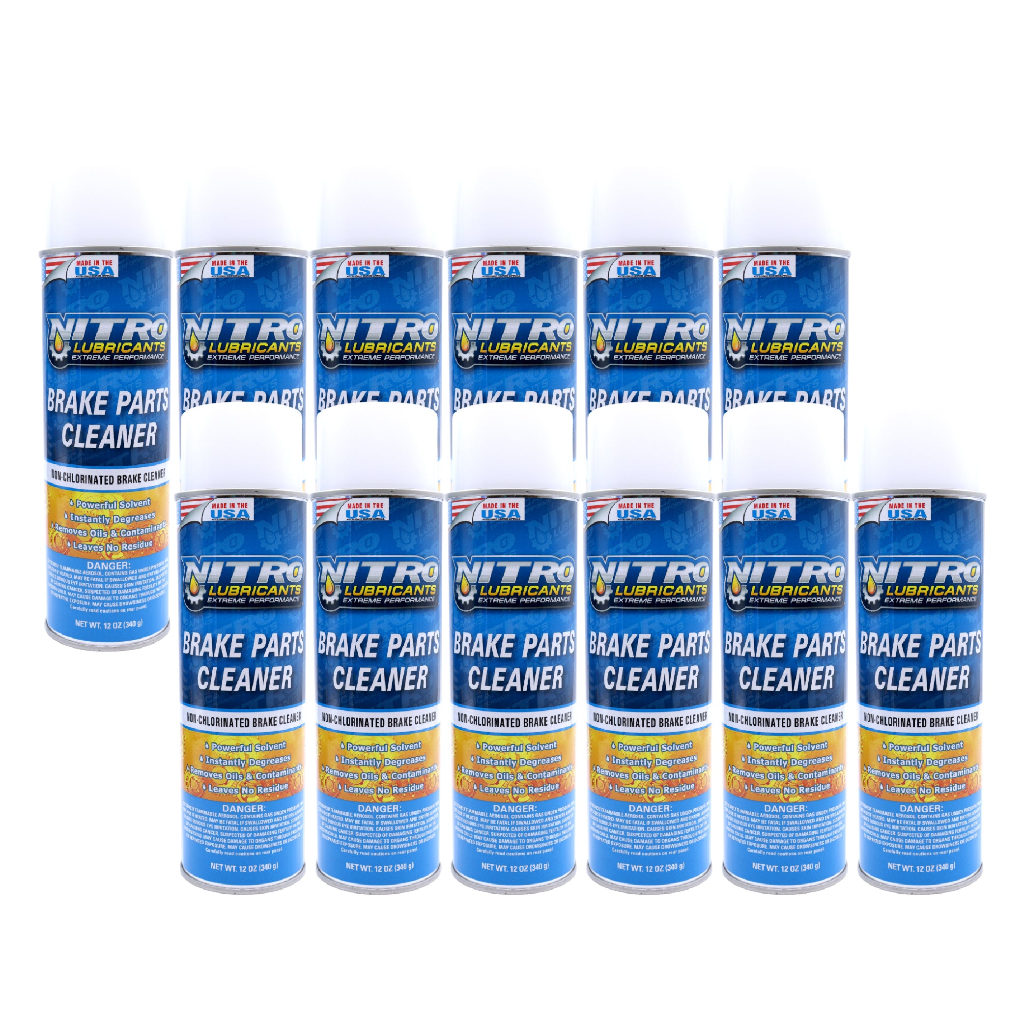 Nitro Lubricants Brake Cleaner – Fast-Drying, Non-Chlorinated Formula Removes Grease, Oil, Tar, and Brake Fluid – Residue-Free Performance – 12oz – Made in USA (12-Pack)