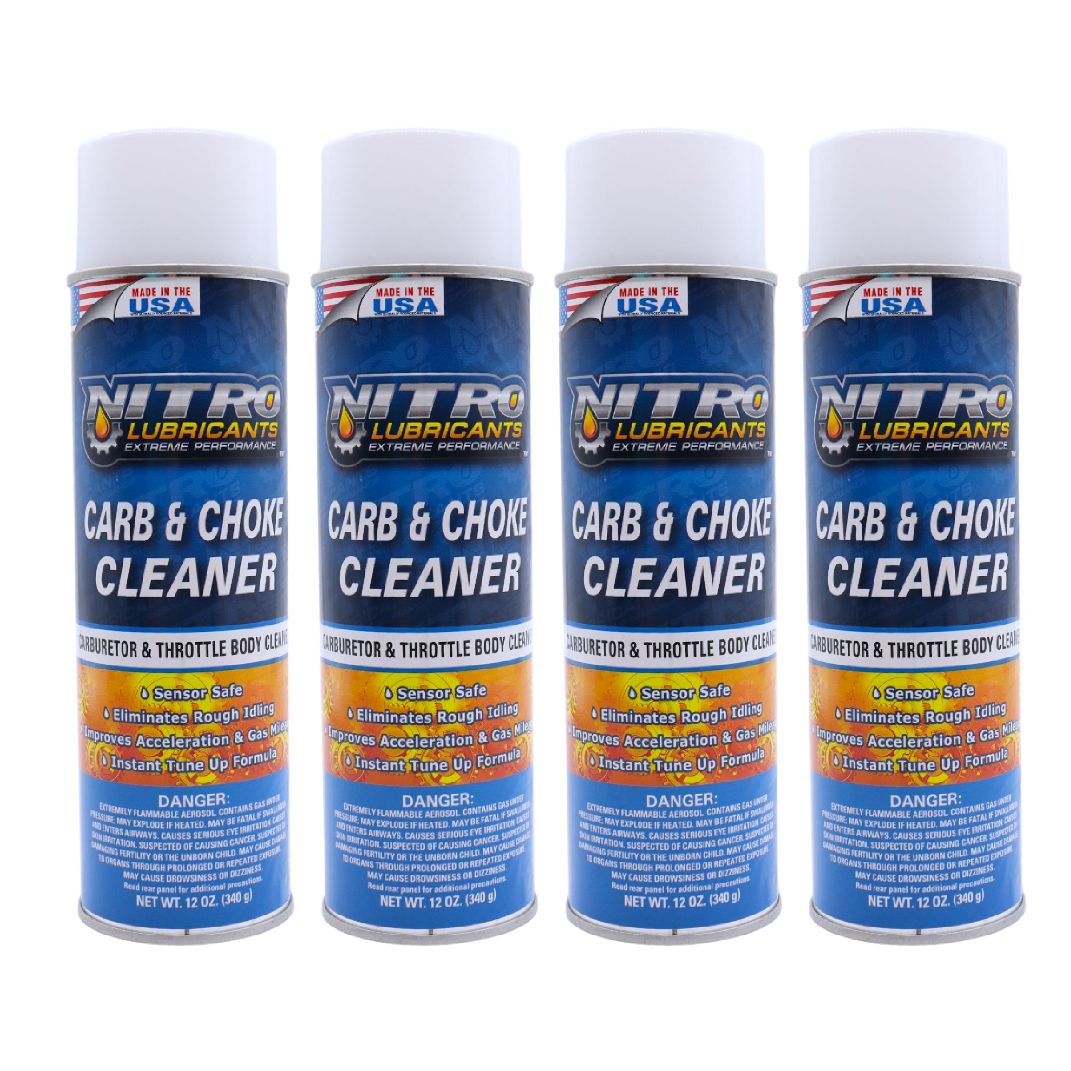 Nitro Lubricants Carb & Choke Cleaner - 12oz Sensor-Safe Formula for Removing Gum, Varnish, Carbon & Grease; Improves Idle & Acceleration in Carburetors, PCV & Linkages - Made in USA (4-Pack)