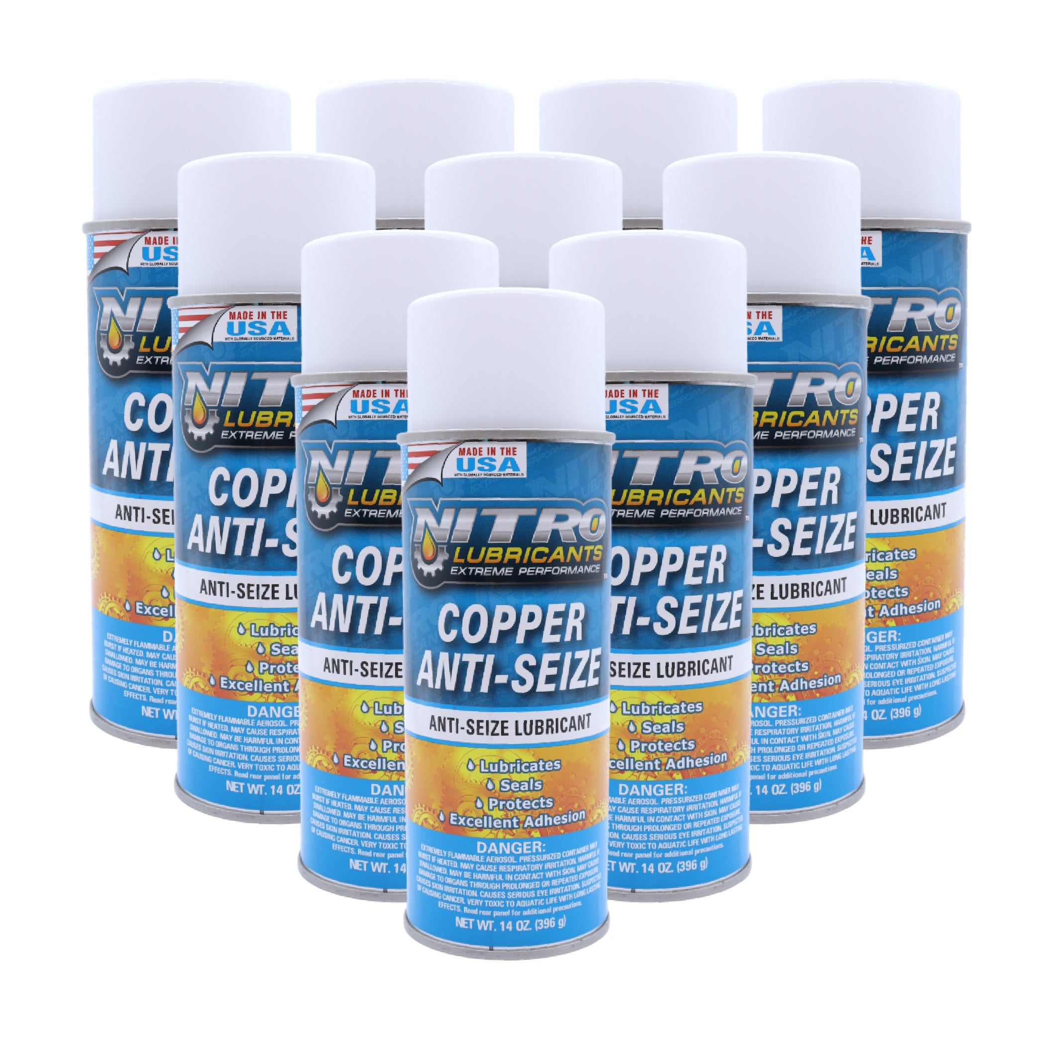 Nitro Lubricants Copper Anti-Seize – 14oz High Temp Anti-Seize Spray for Nuts, Bolts, Studs, Bearings & Slides; Prevent Seizing, Galling & Corrosion in Industrial & Automotive - Made in USA (10-Pack)