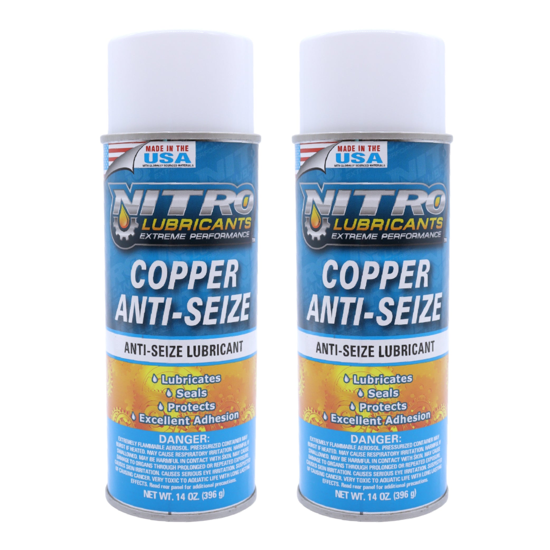 Nitro Lubricants Copper Anti-Seize – 14oz High Temp Anti-Seize Spray for Nuts, Bolts, Studs, Bearings & Slides; Prevents Seizing, Galling & Corrosion in Industrial & Automotive - Made in USA  (2-Pack)