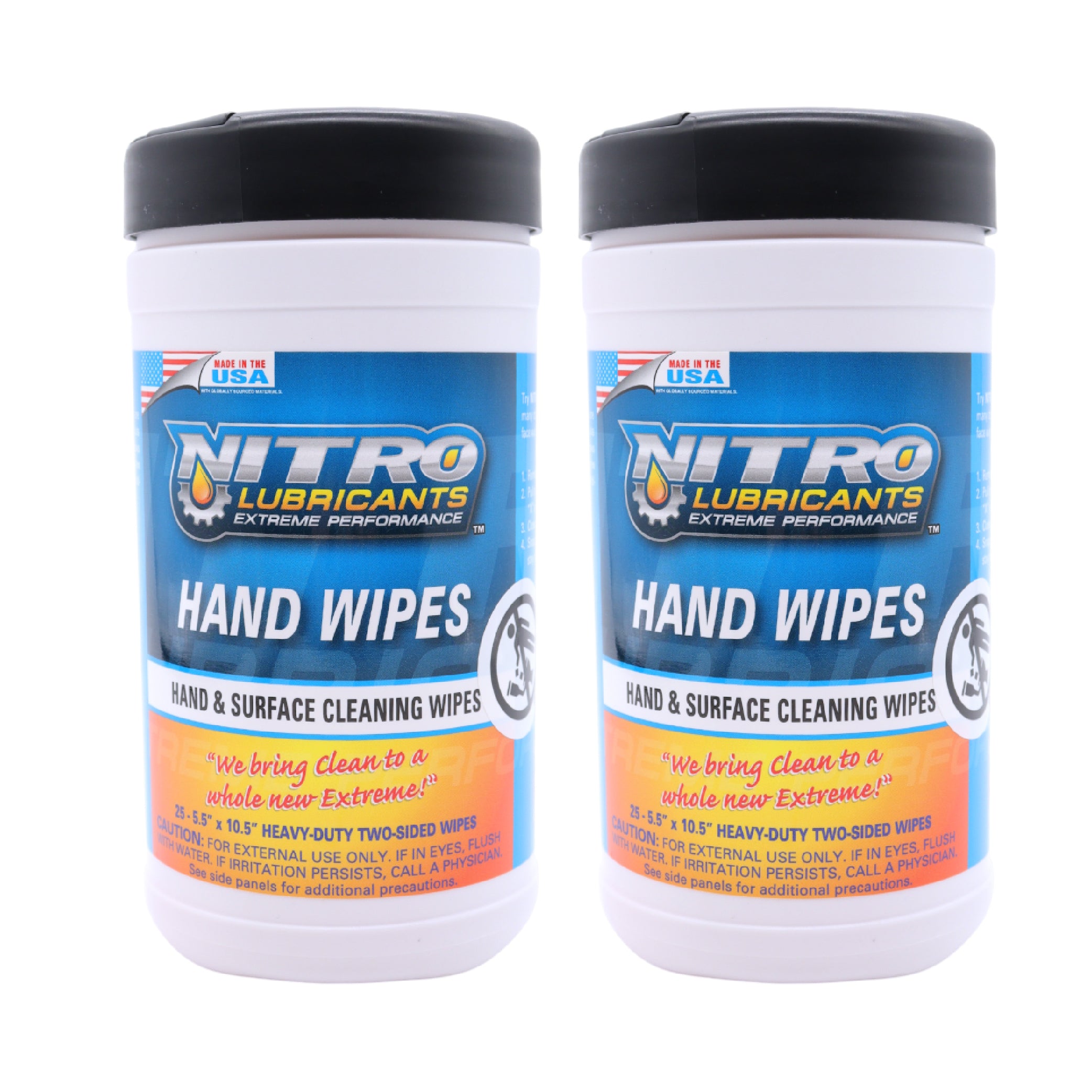 Nitro Lubricants Hand & Surface Cleaning Wipes – Heavy Duty, Two-Sided, Waterless Towels Remove Grease, Oil, Tar, Brake Dust, Inks, Grime & Nonporous Surfaces – 25 Count – Made in USA (2-Pack)